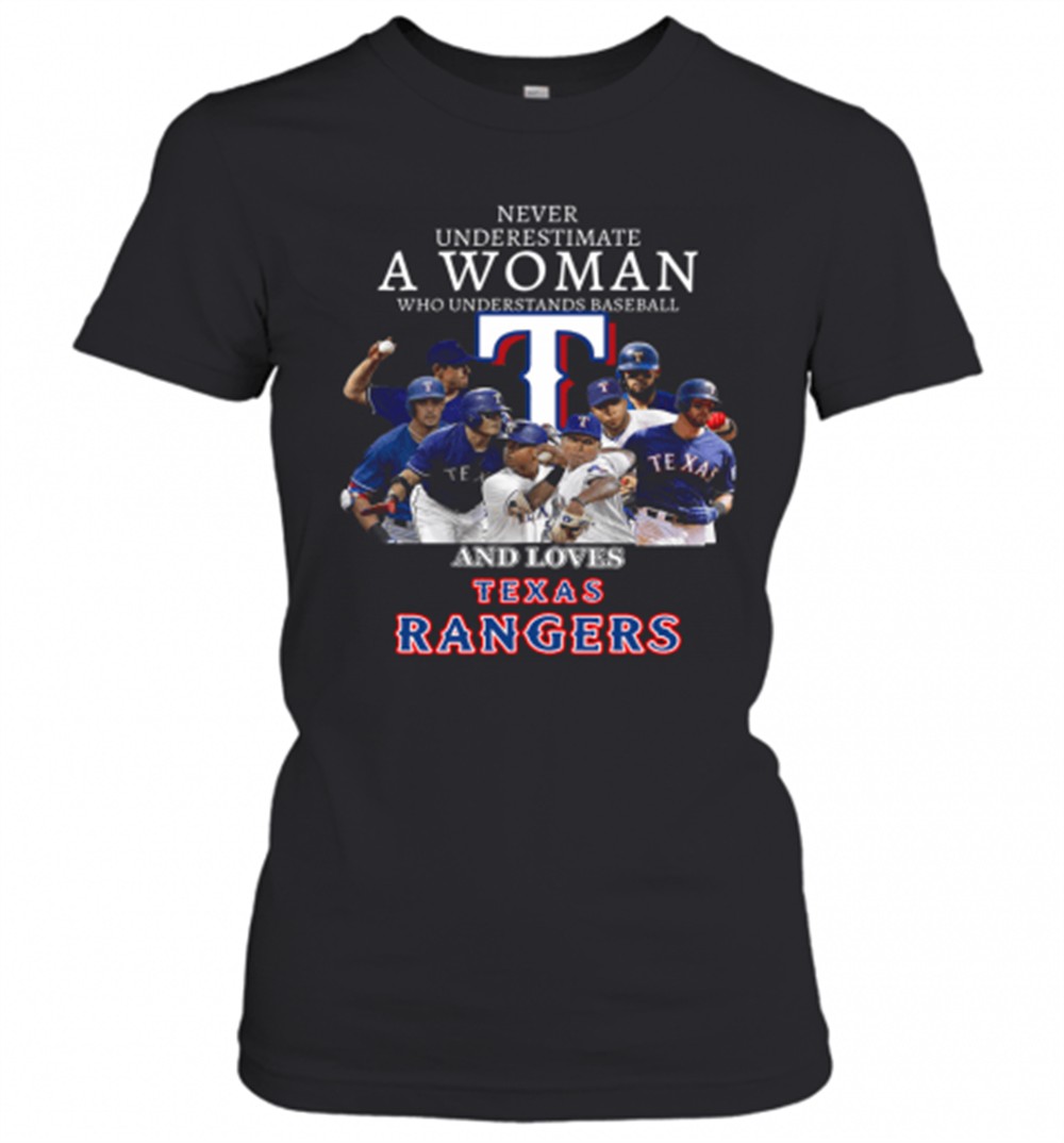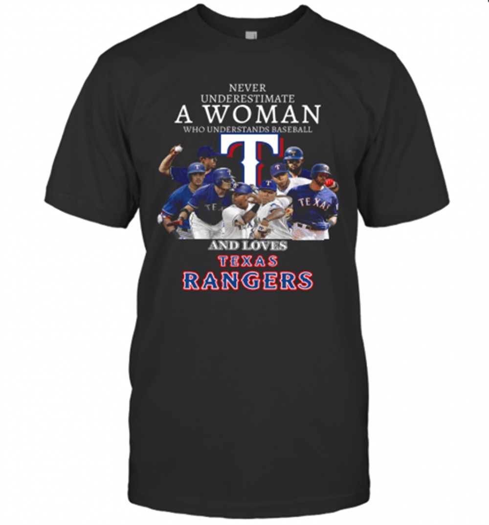 Never Underestimate A Woman Who Understands Baseball And Loves Texas Rangers T-Shirt