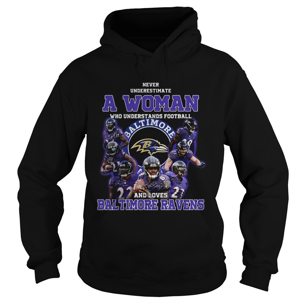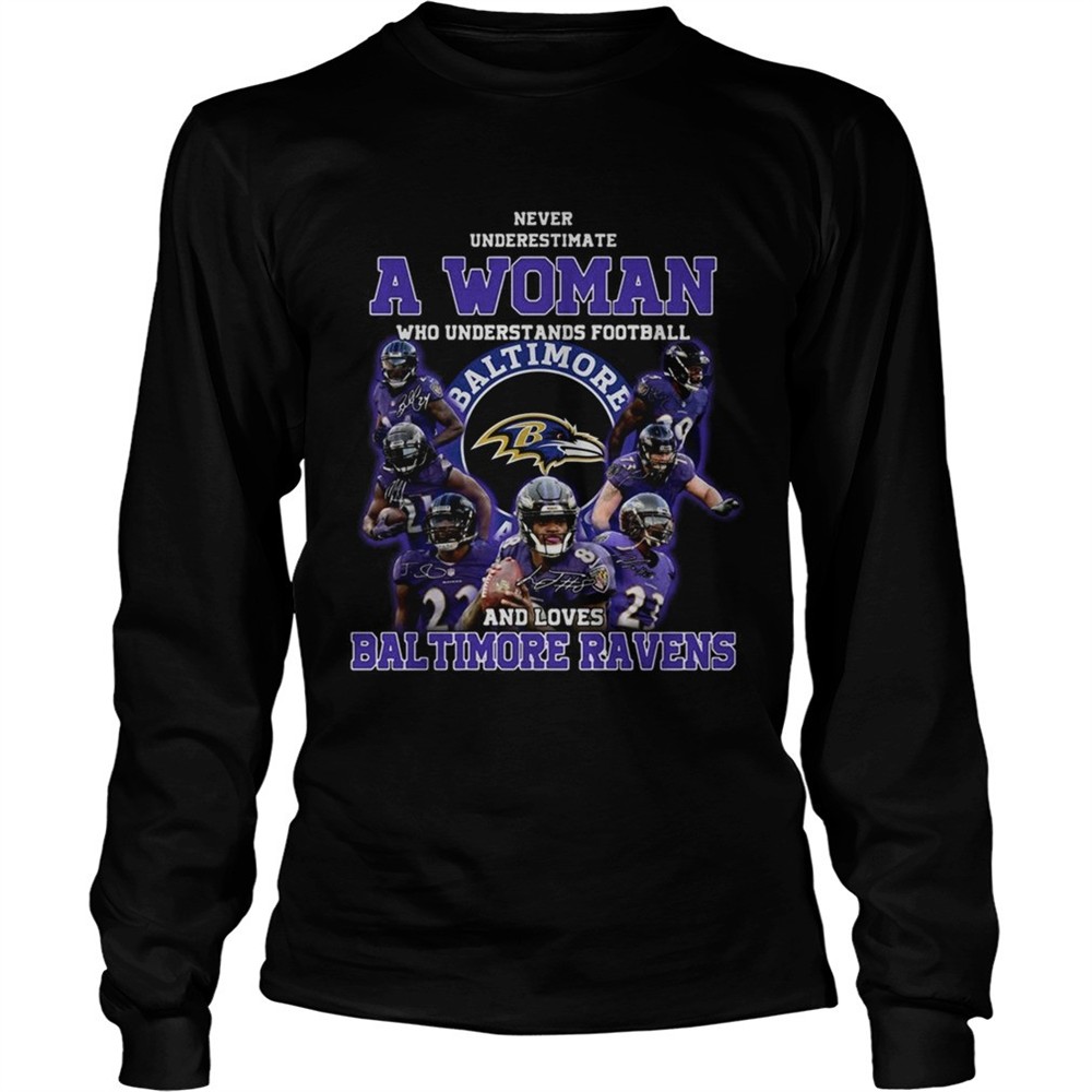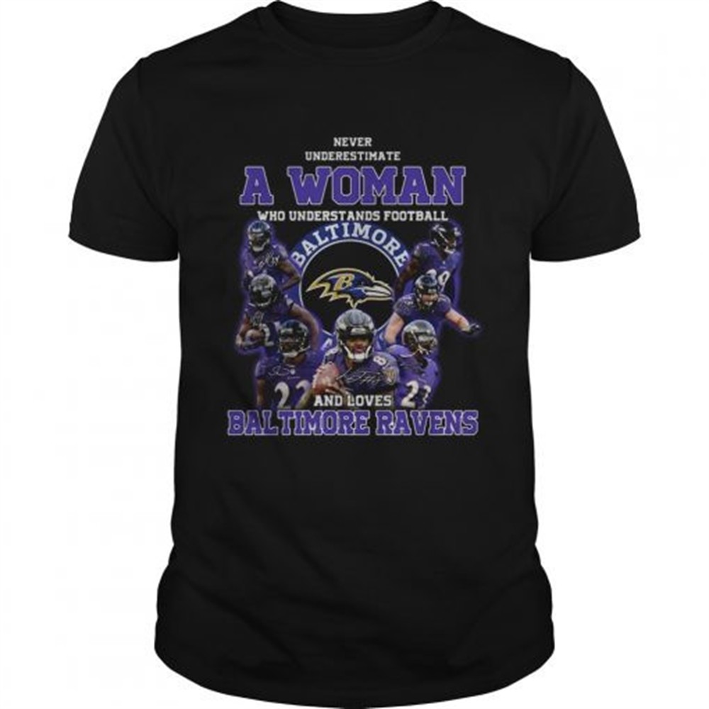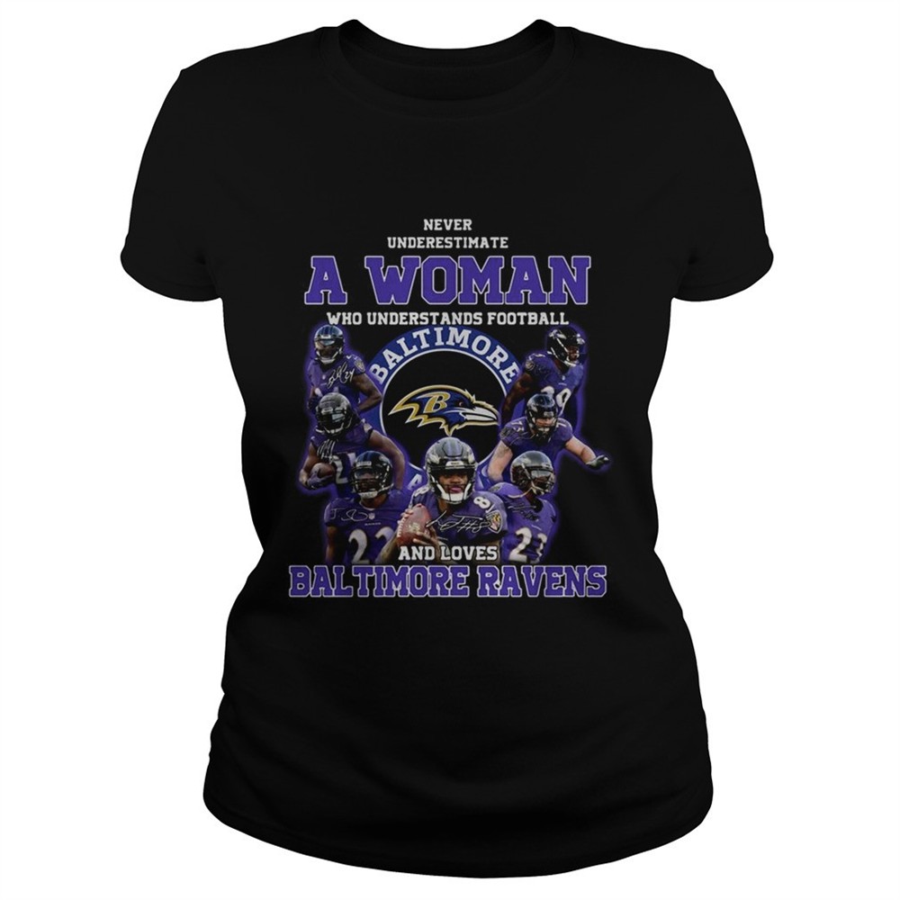 Never underestimate a woman who understands football and loves Baltimore Ravens shirt
