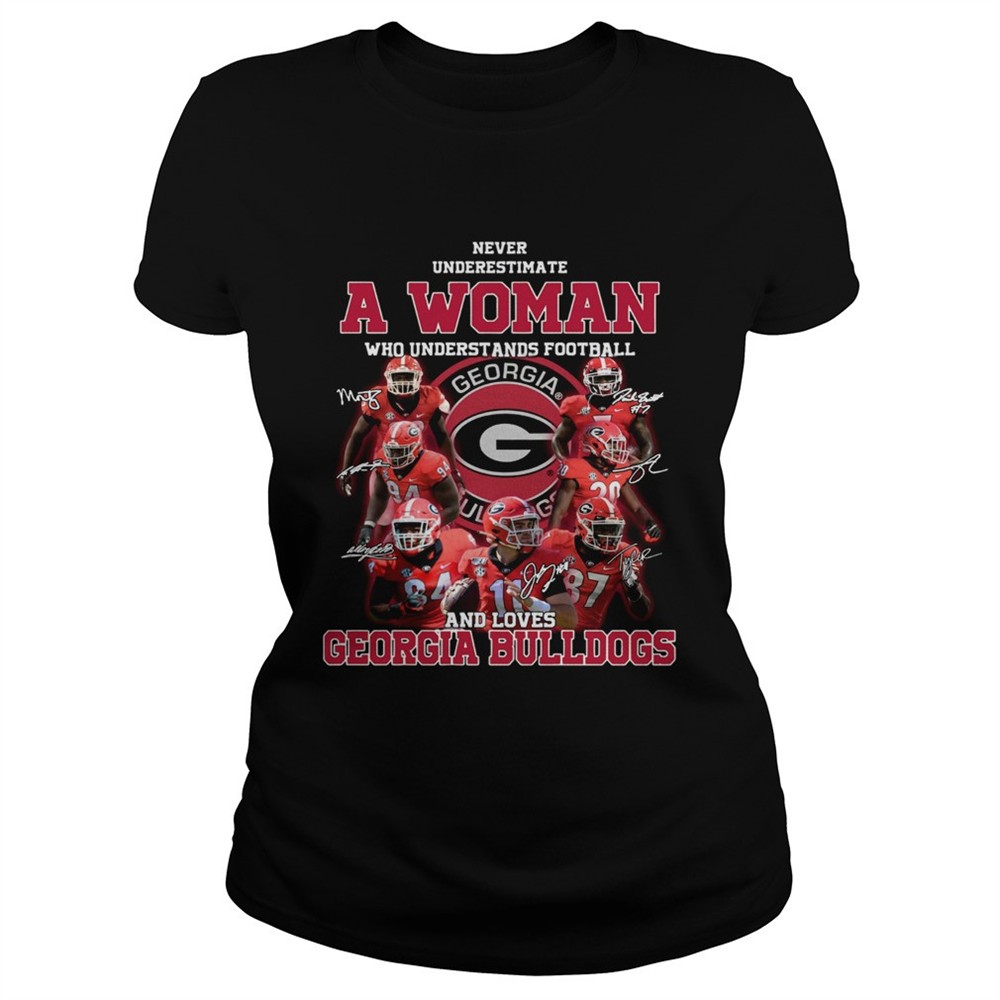 Never underestimate a woman who understands football and loves Georgia Bulldogs shirt