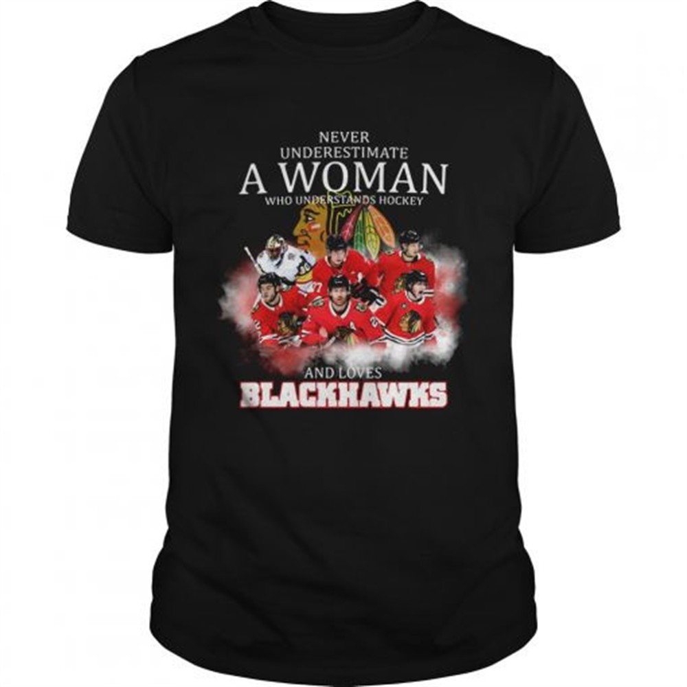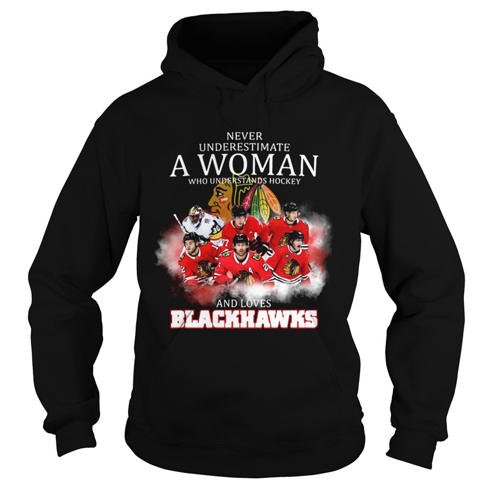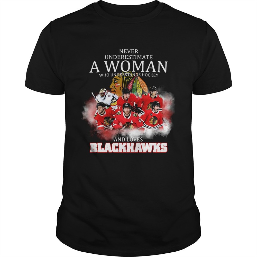 Never underestimate a woman who understands hockey and loves blackhawks logo shirt