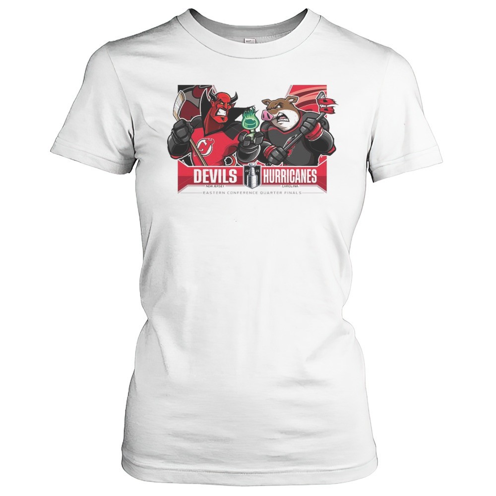 New Jersey Devils Vs Carolina Hurricanes 2025 Stanley Cup Playoffs Western Conference Quarter Finals Mascot T-shirt