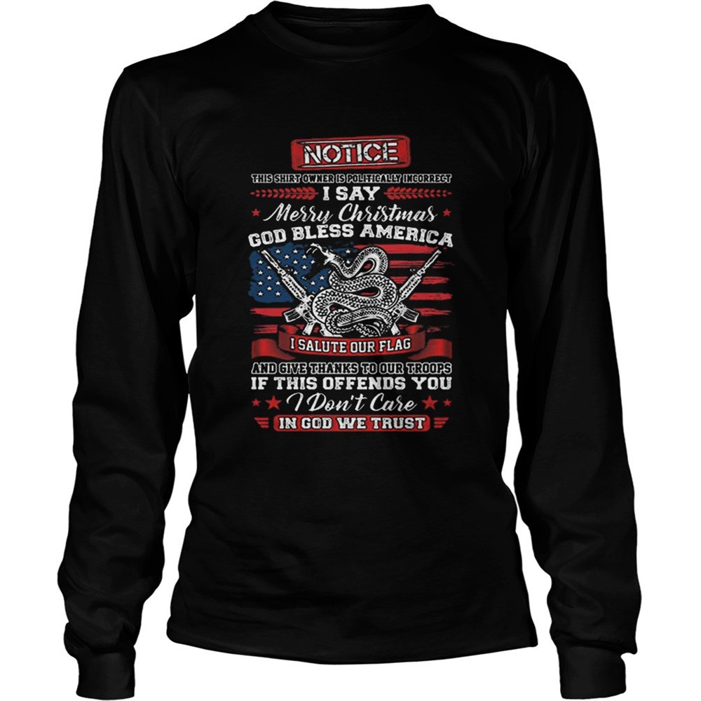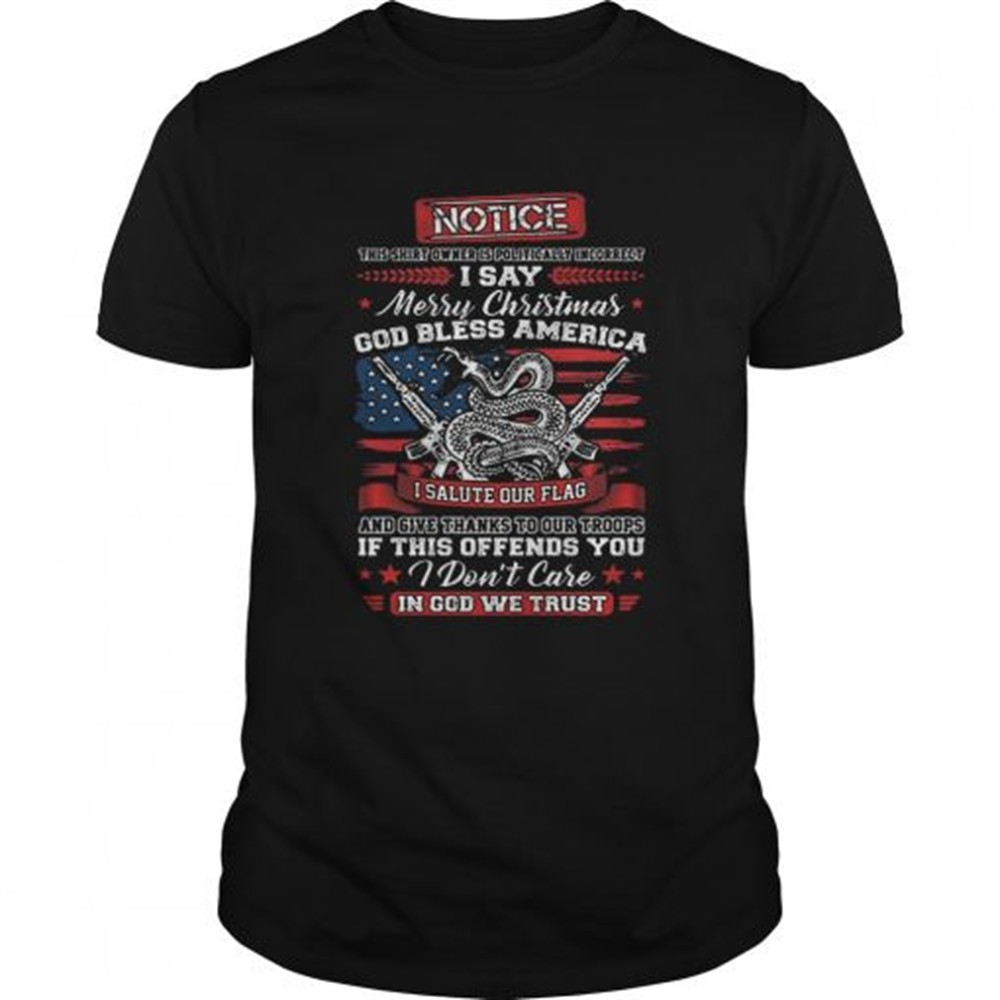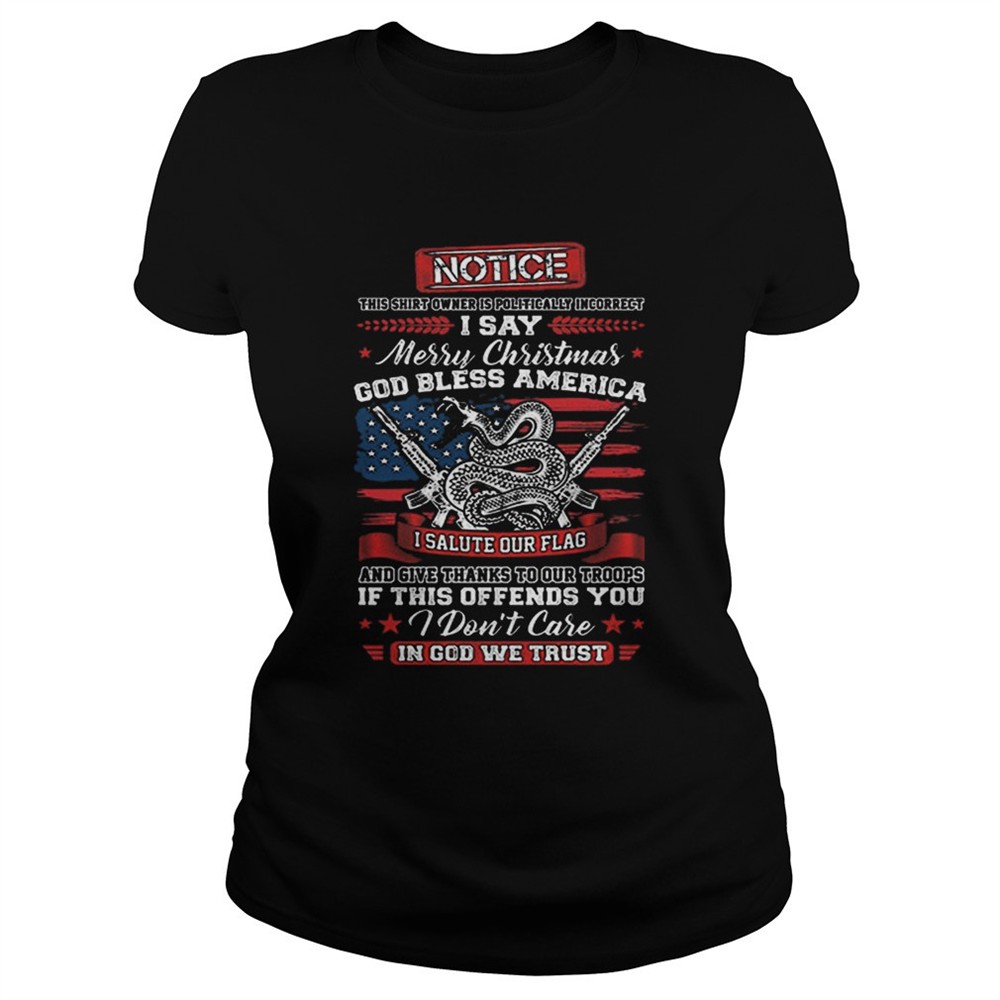 Notice i say Merry Christmas god bless America i salute our flag shirt