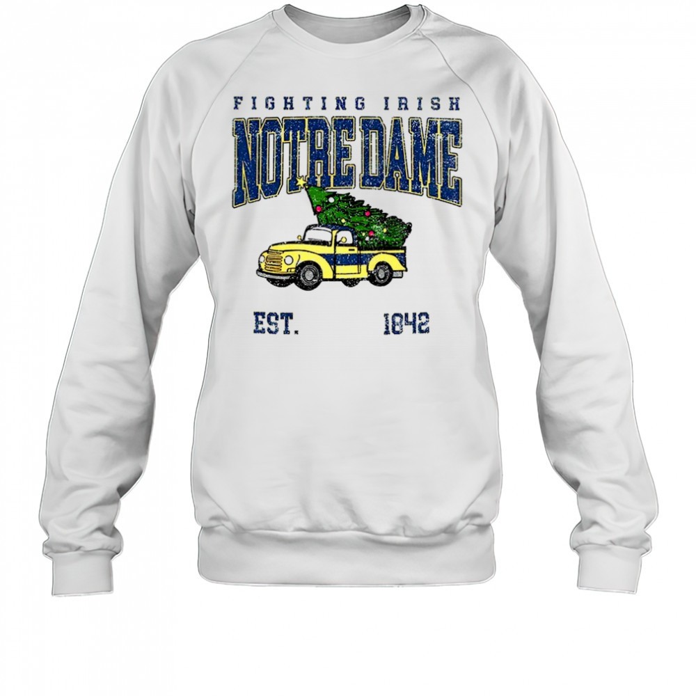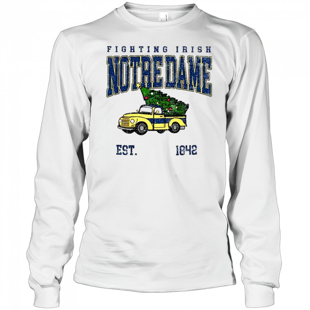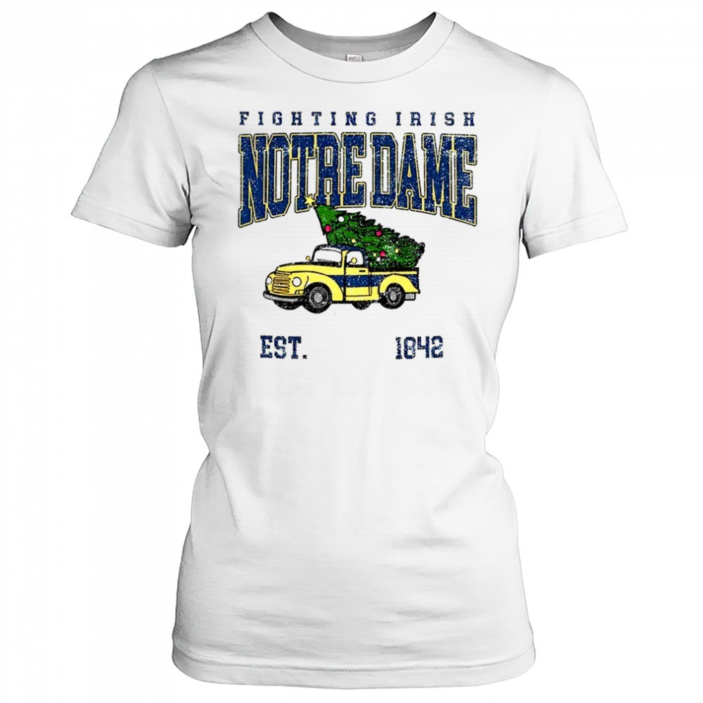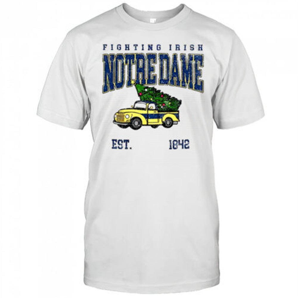 Notre Dame Fighting Irish football Christmas tree truck est 1842 Merry Christmas shirt