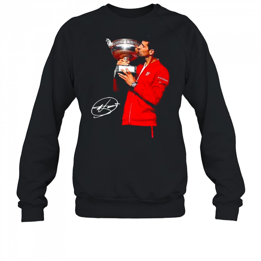 Novak Djokovic French Open tennis kiss trophy signature shirt