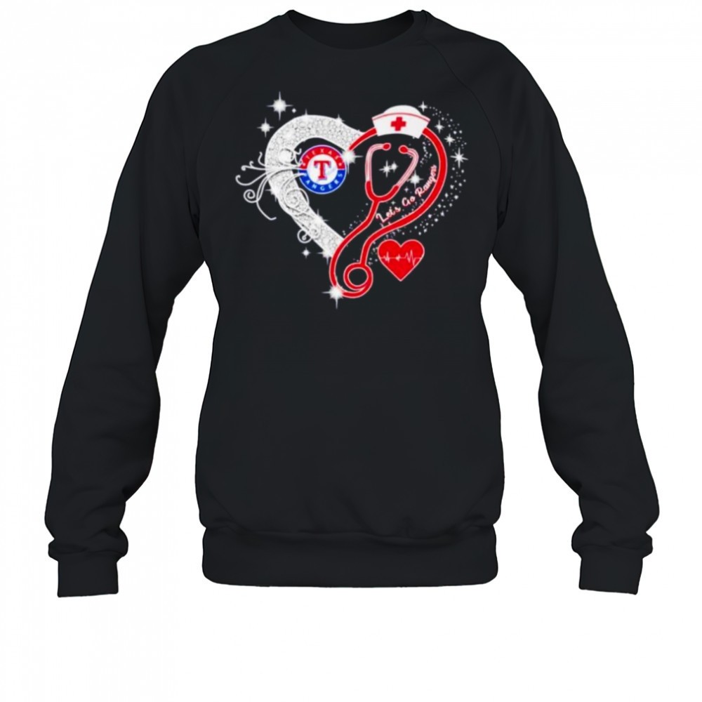 Nurse Texas Rangers lets go Rangers heart stethoscope shirt