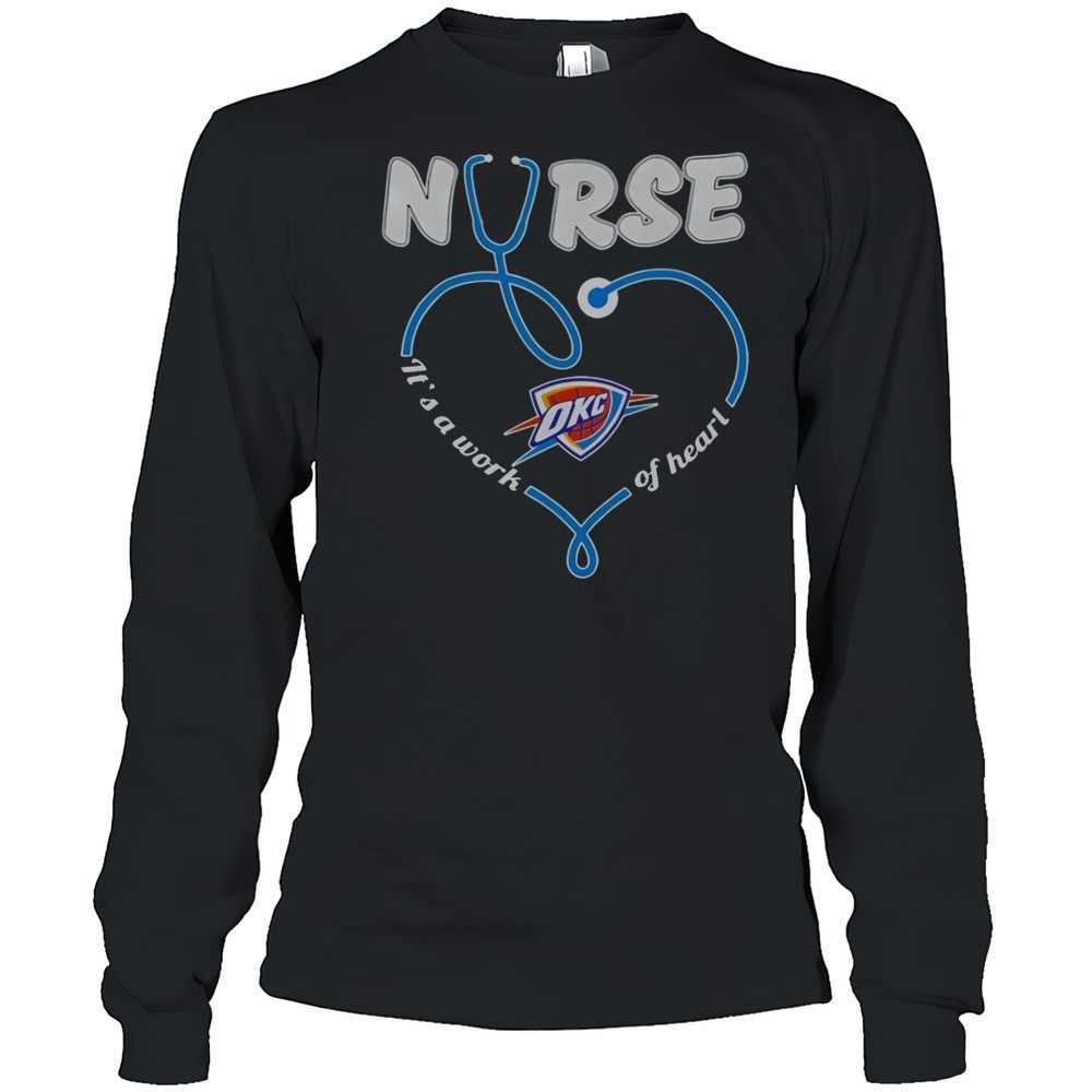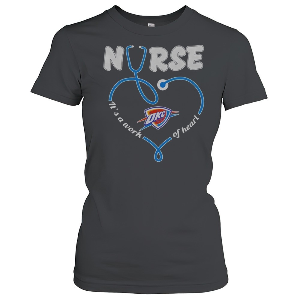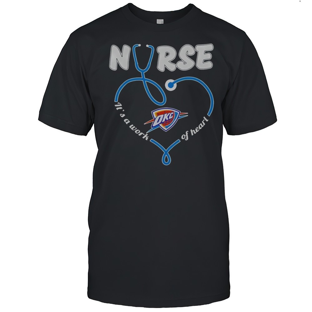 Official Oklahoma City Thunder Stethoscope Nurse Its A Work Of Heart T-Shirt