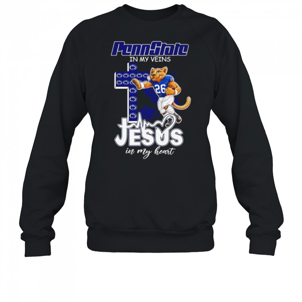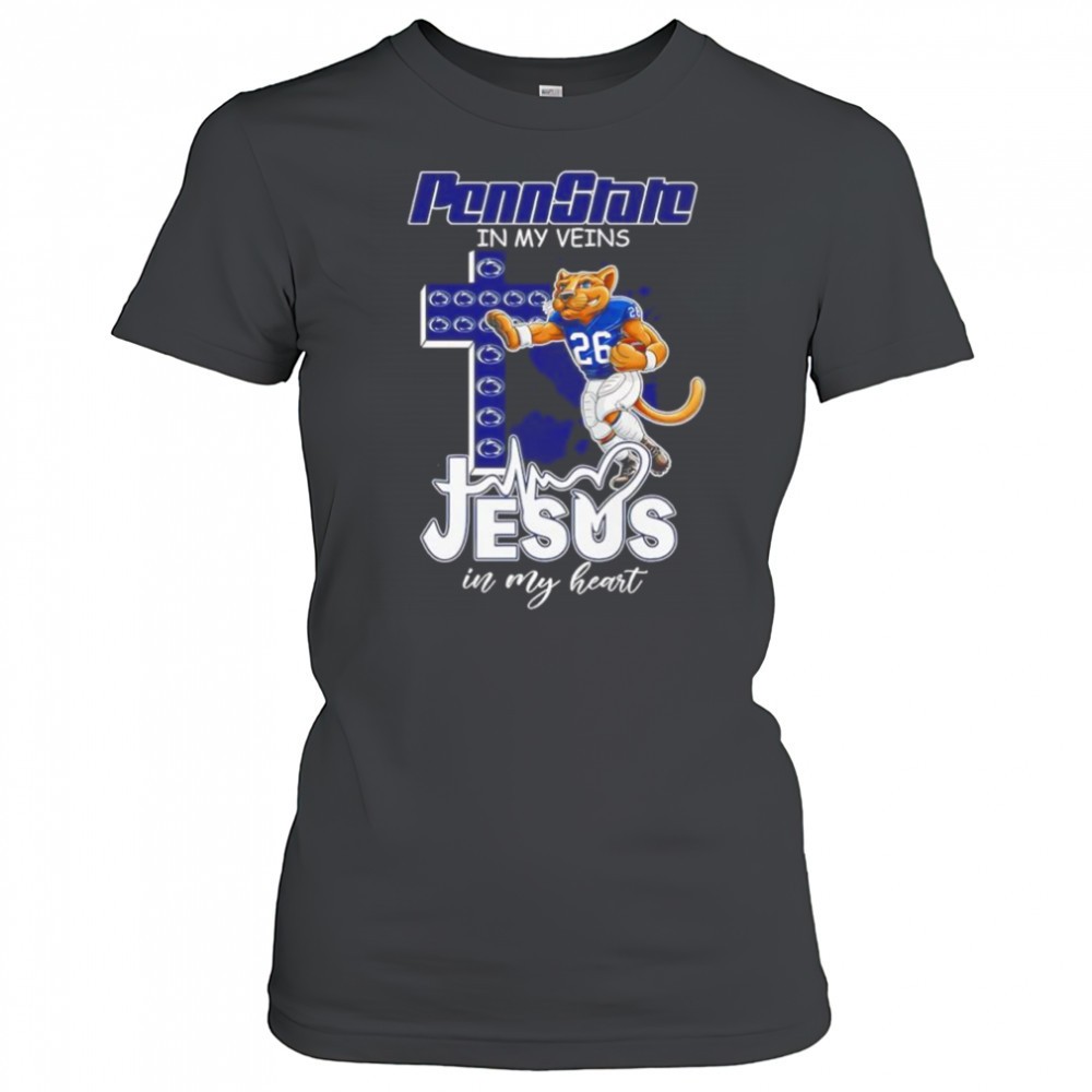 Penn State Nittany Lions in my veins Jesus in my heart mascot shirt