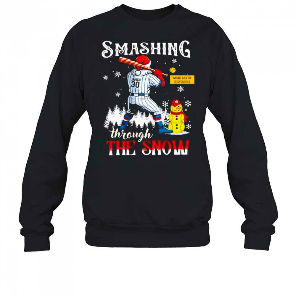 Personalized Christmas Softball Smashing Through The Snow Shirt
