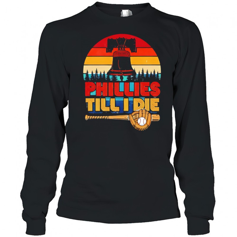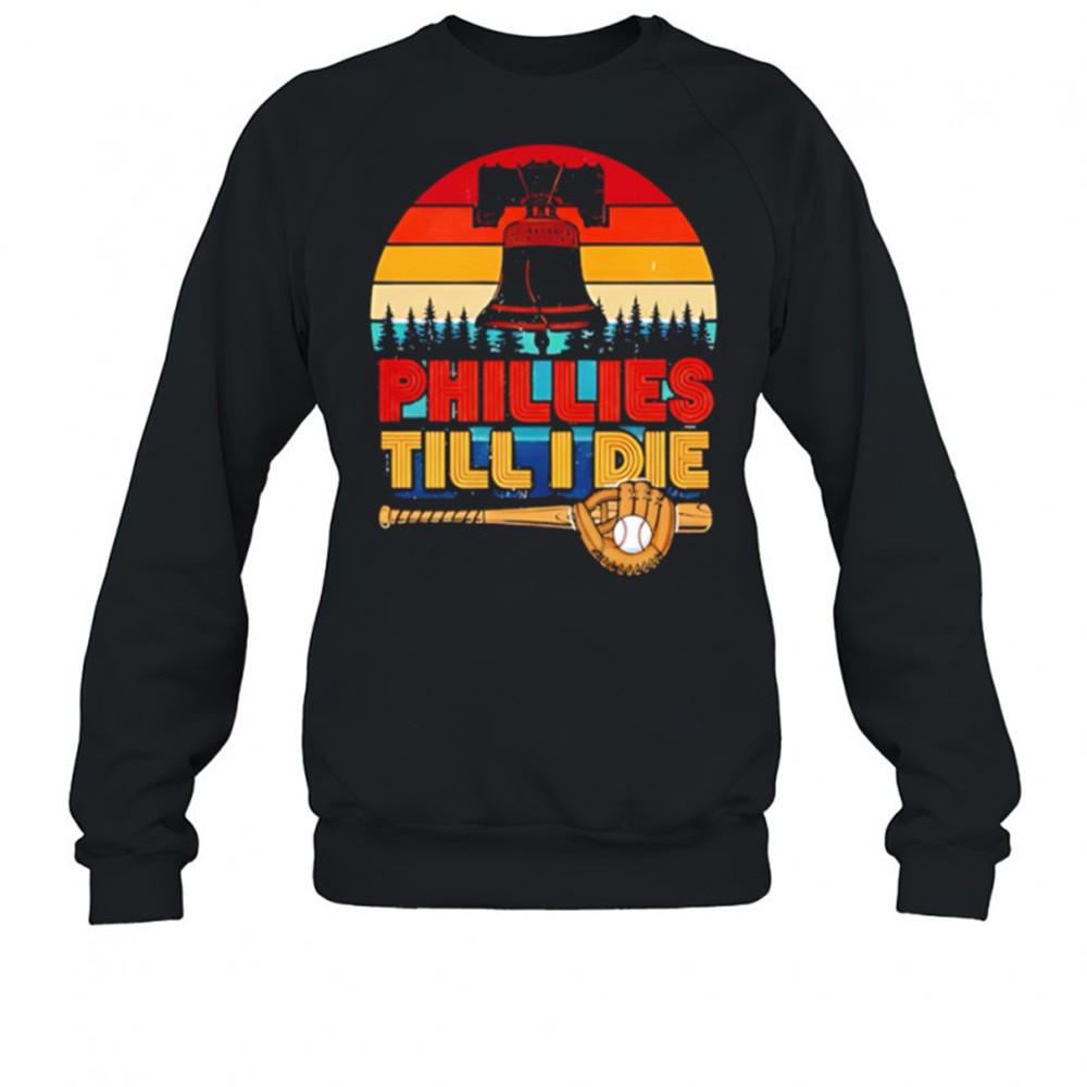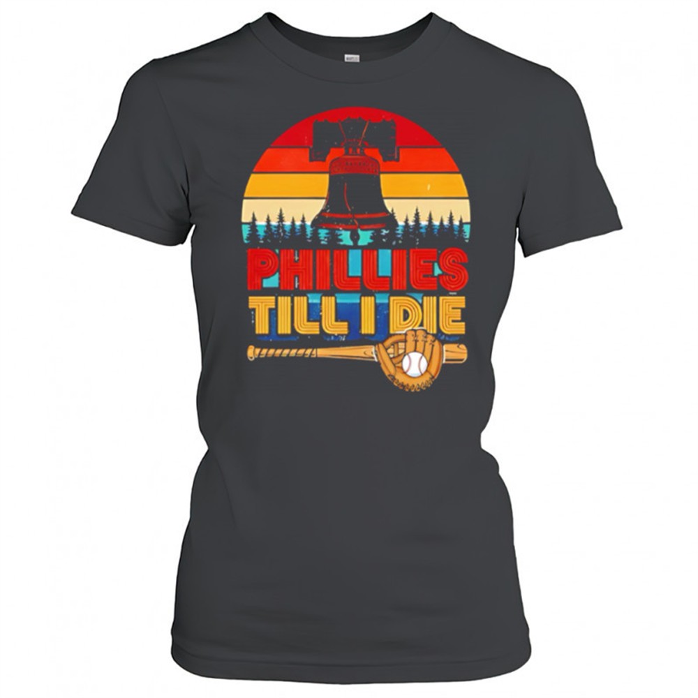 Phillies Till I Die Baseball Bat Glove Vintage Sunset Liberty Bell shirt
