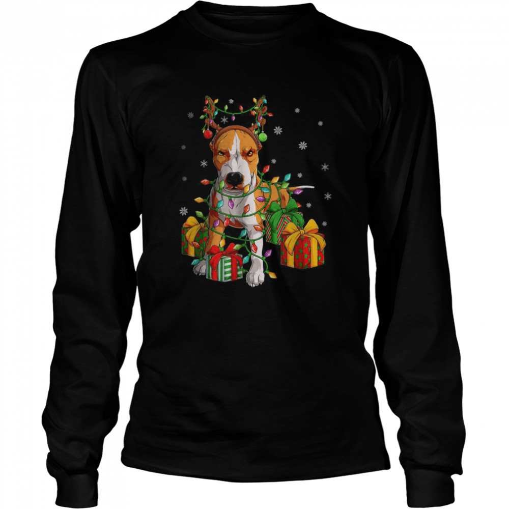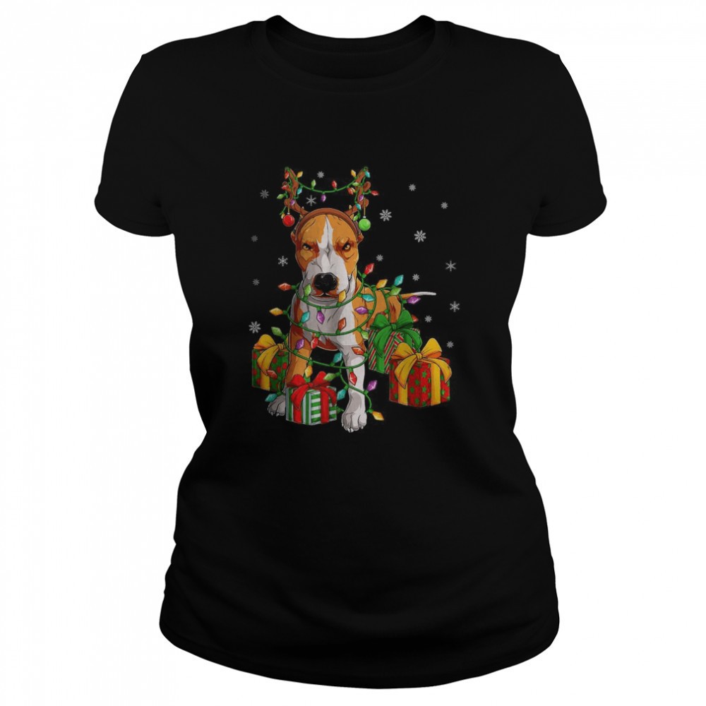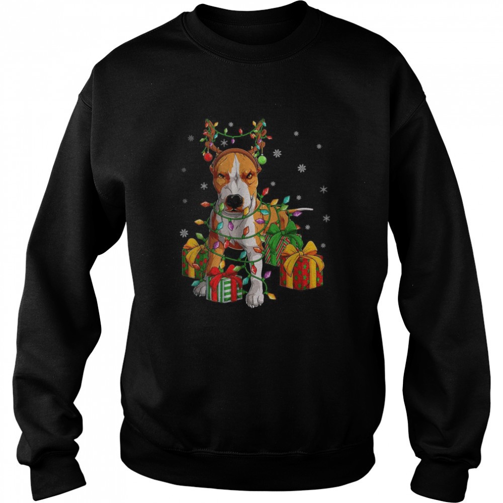 Pit Bull Dog Xmas Lighting Reindeer Hat Pit Bull Christmas Shirt