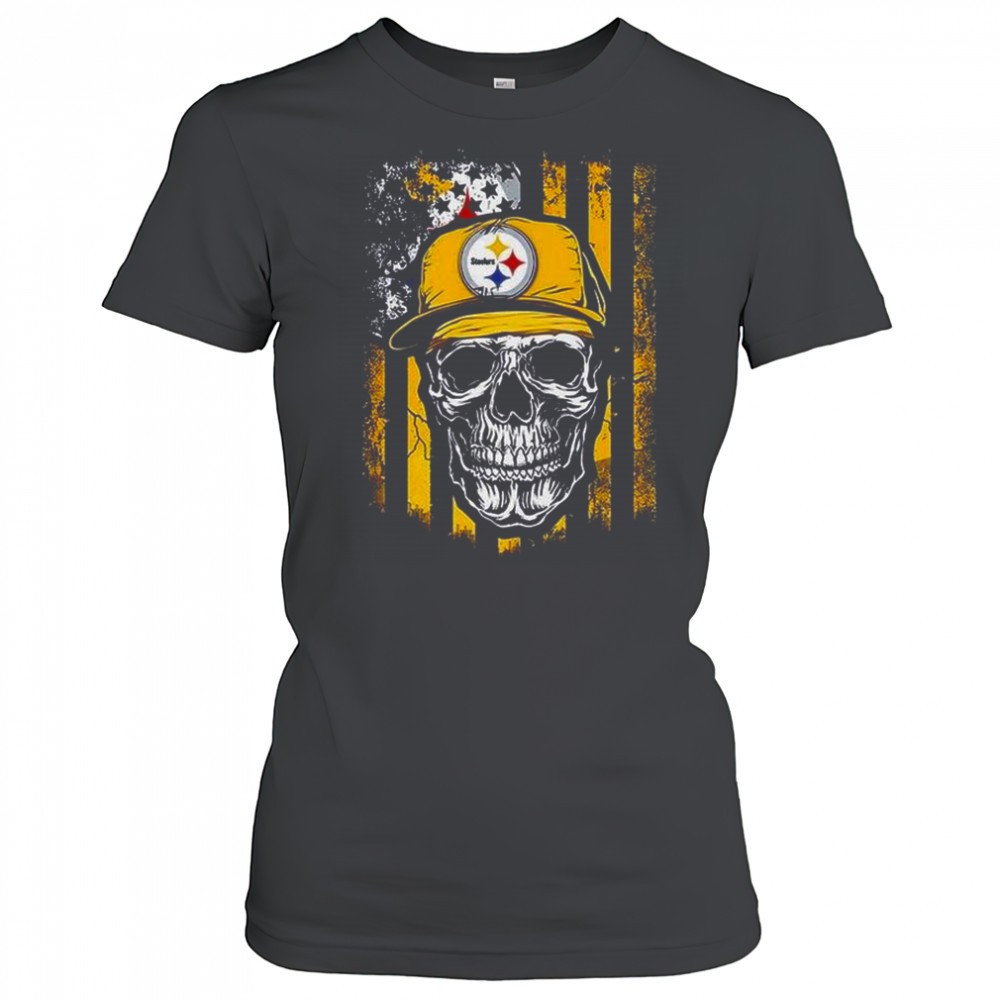 Pittsburgh Steelers NFL Skull American Flag Footaball Lover T-Shirt