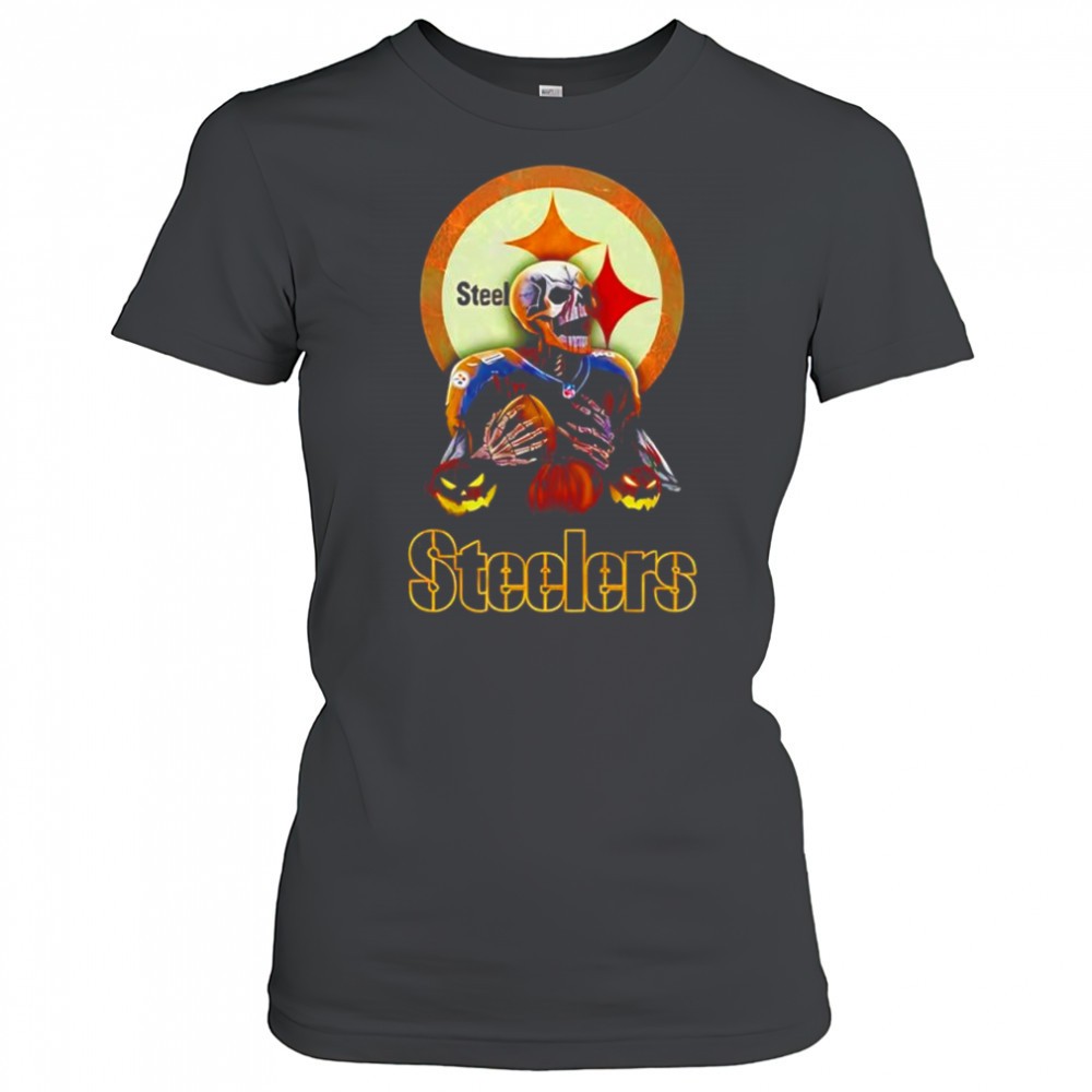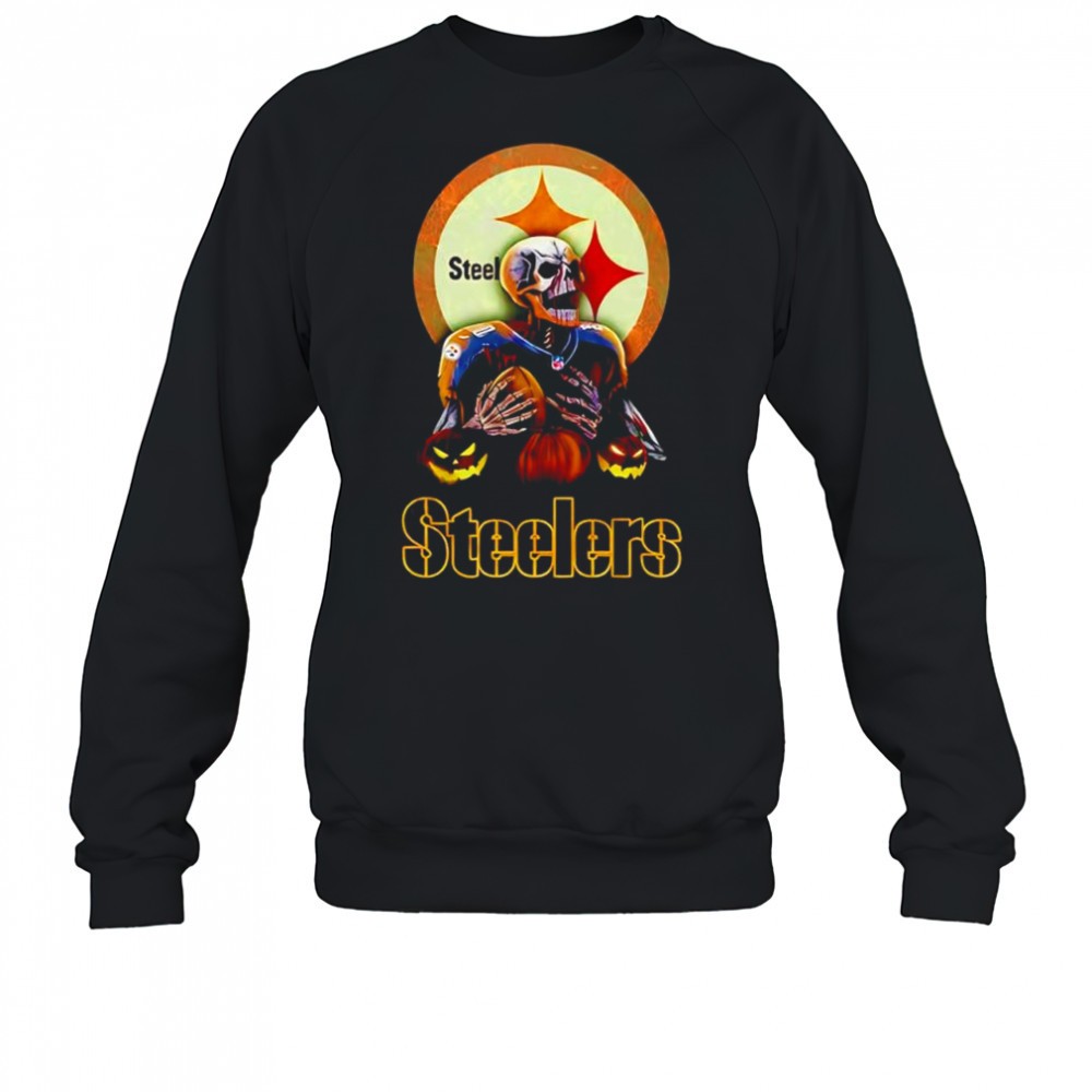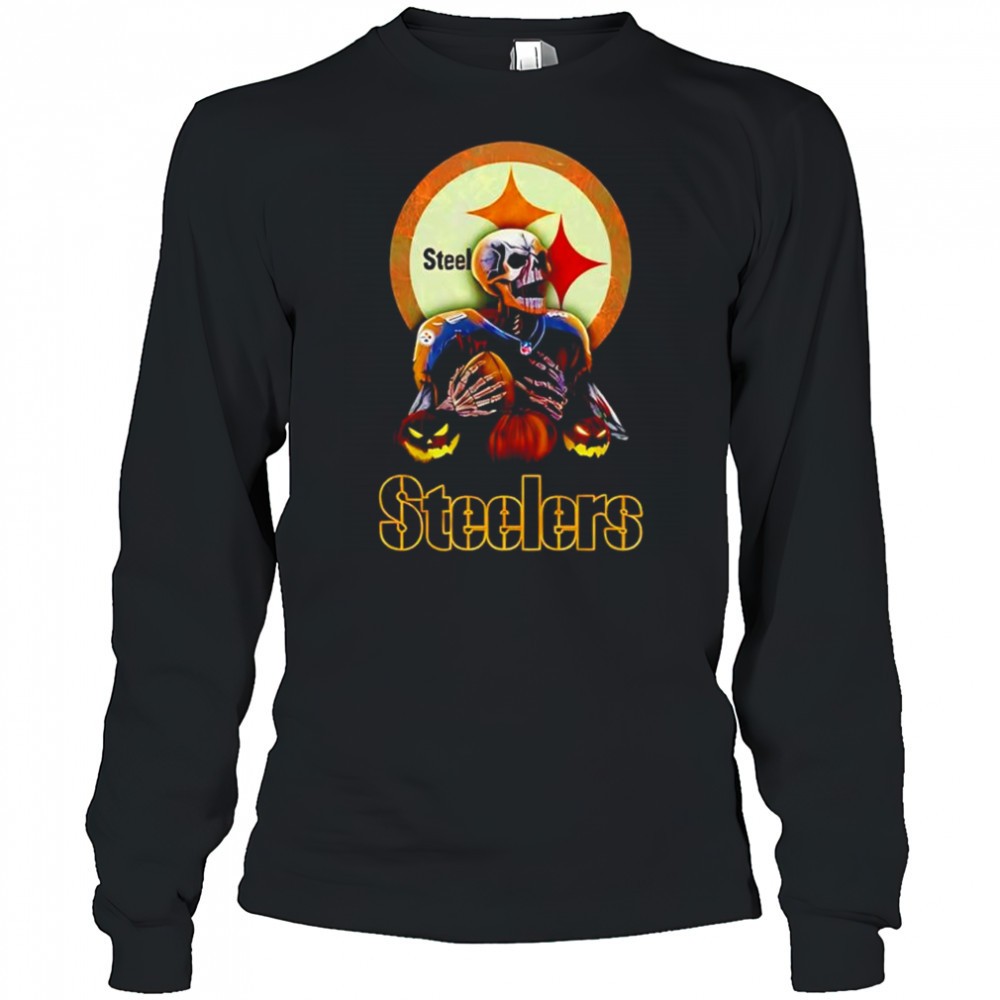 Pittsburgh Steelers skeleton Halloween log with pumpkin shirt