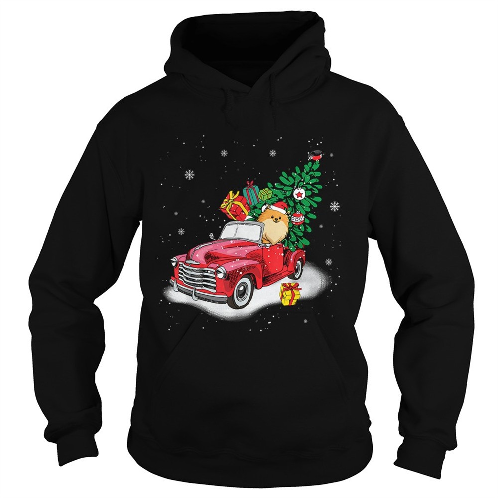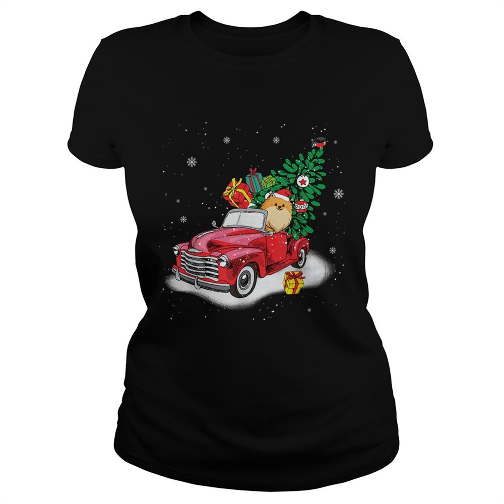 Pomeranian Rides Red Truck Christmas Tree Xmas Gifts TShirt