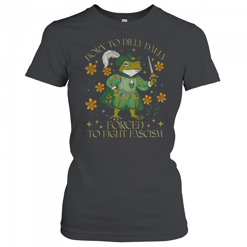 Portland Frog born to dilly dally forced to fight fascism anti Trump shirt