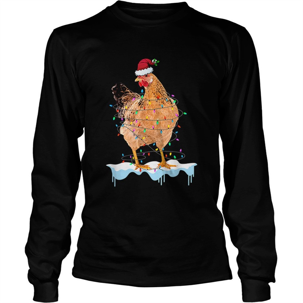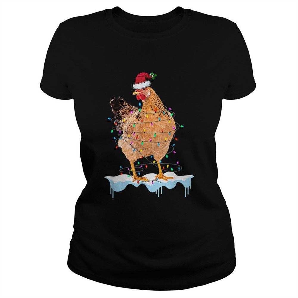 Pretty Chicken Lights Santa Hat Christmas Chicken Lover Xmas Gift shirt