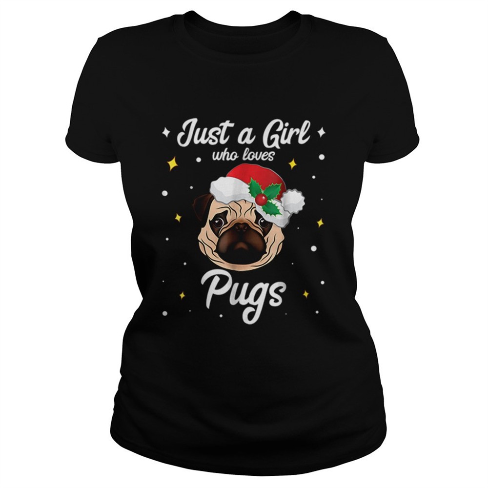 Pretty Just A Girl Who Loves Pug Christmas Santa Claus shirt