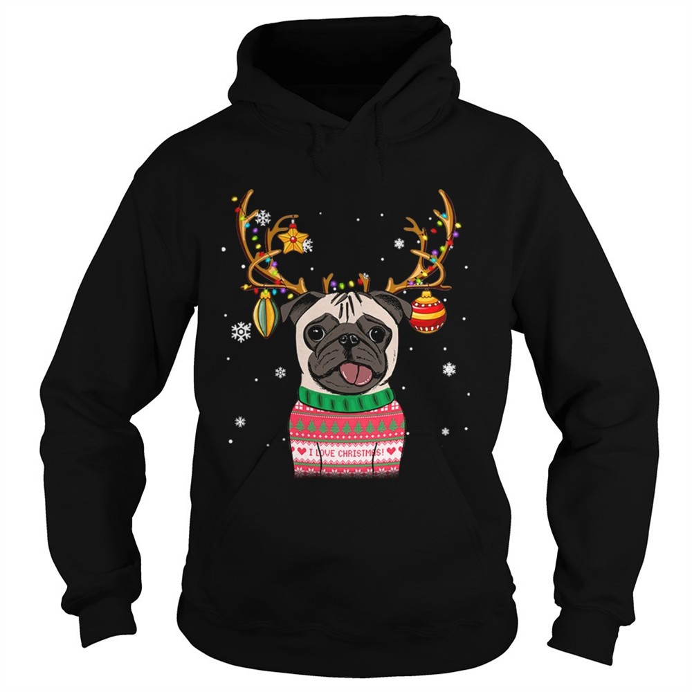 Pug Reindeer Christmas Holiday Funny TShirt
