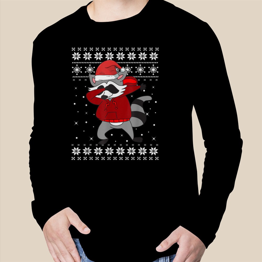 Raccoon Dabbing Dance Ugly Sweater Christmas Pajamas T-Shirt B0BMB6PJFY