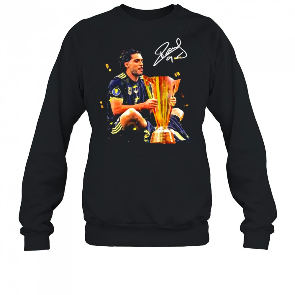 Raúl Jiménez holding Trophy Concacaf Gold Cup Mexico 2025 Champions signature shirt