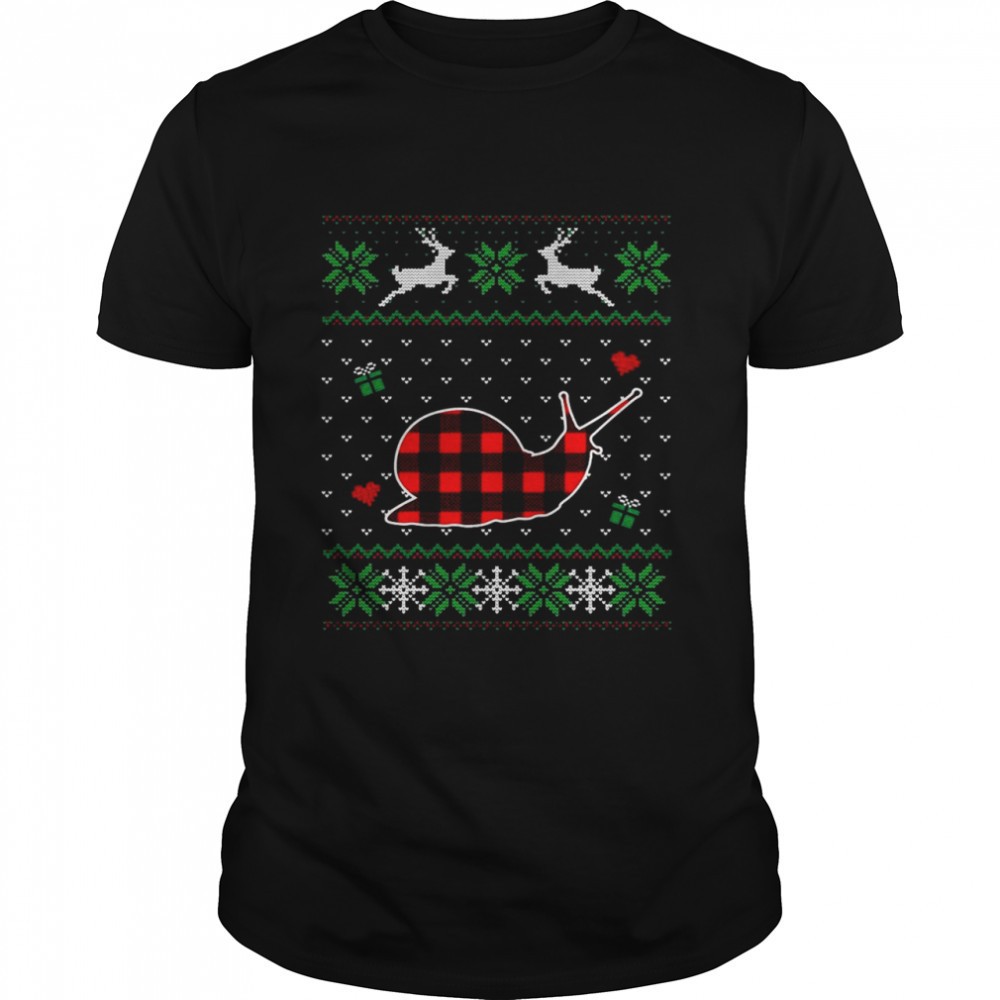 Red Plaid Ugly Christmas Snail Animals Sweater T-shirt