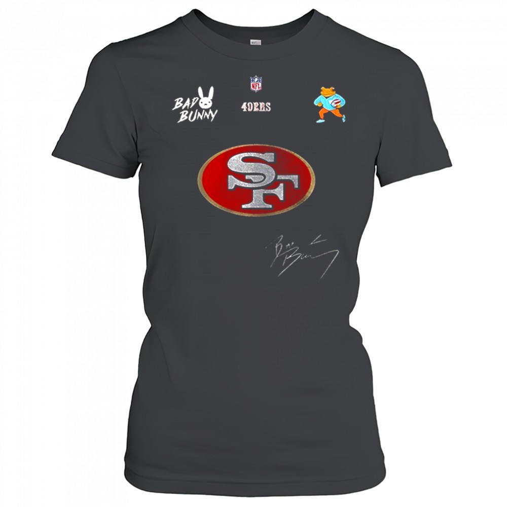 San Francisco 49ers x Bad Bunny Benito football mascot signature shirt