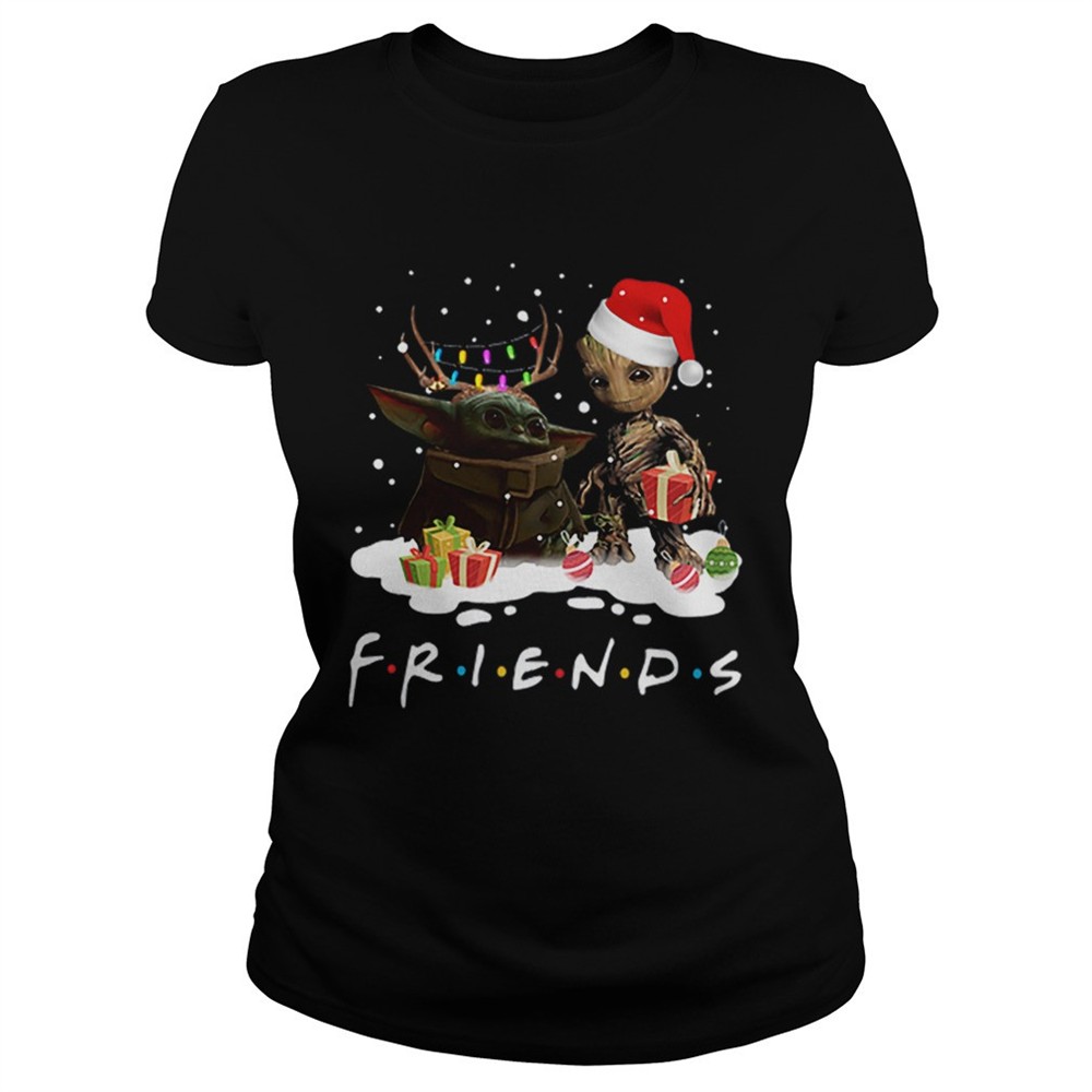 Santa baby Yoda and baby Groot Reindeer light christmas shirt