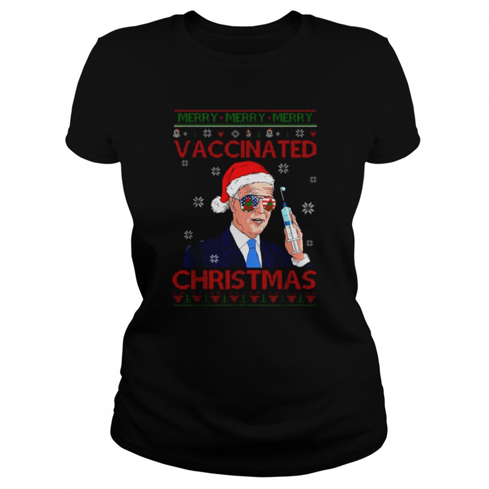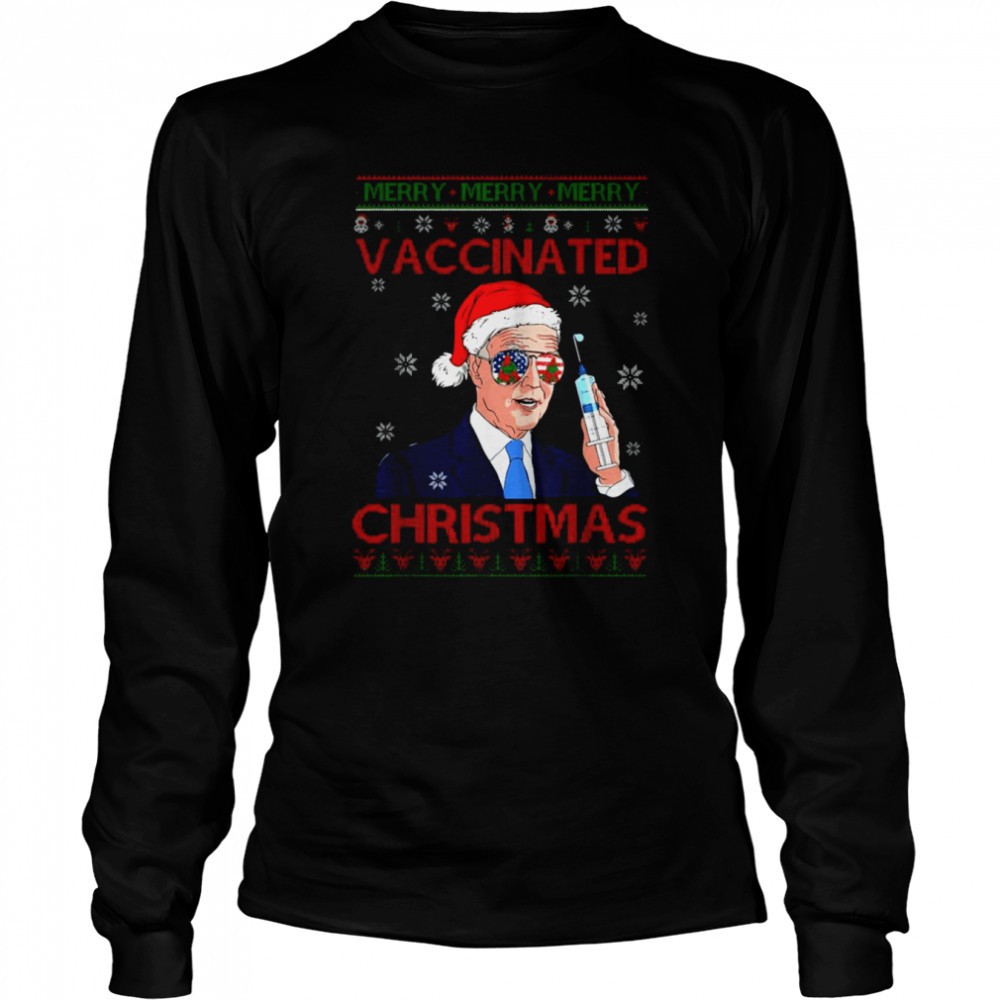 Santa Biden merry merry merry vaccinated ugly Christmas shirt