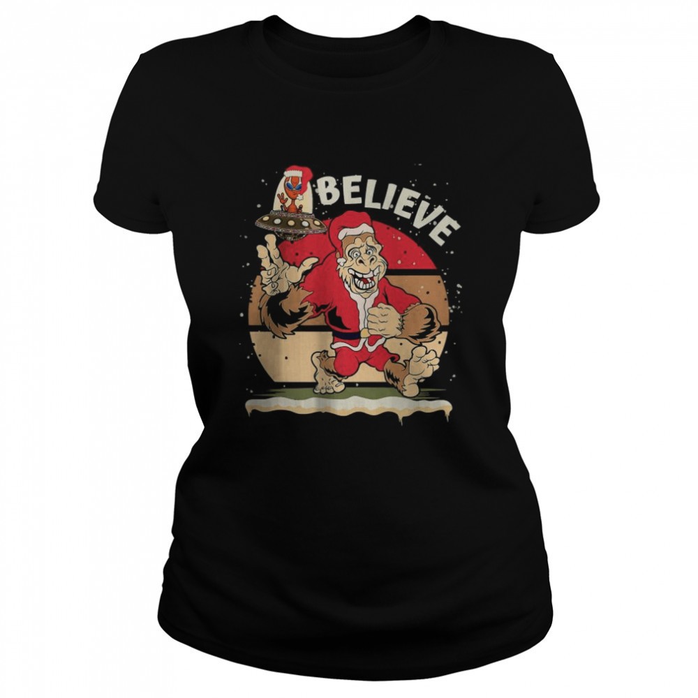 Santa Bigfoot And Alien Christmas Yeti Pajamas For Family Premium T-Shirt