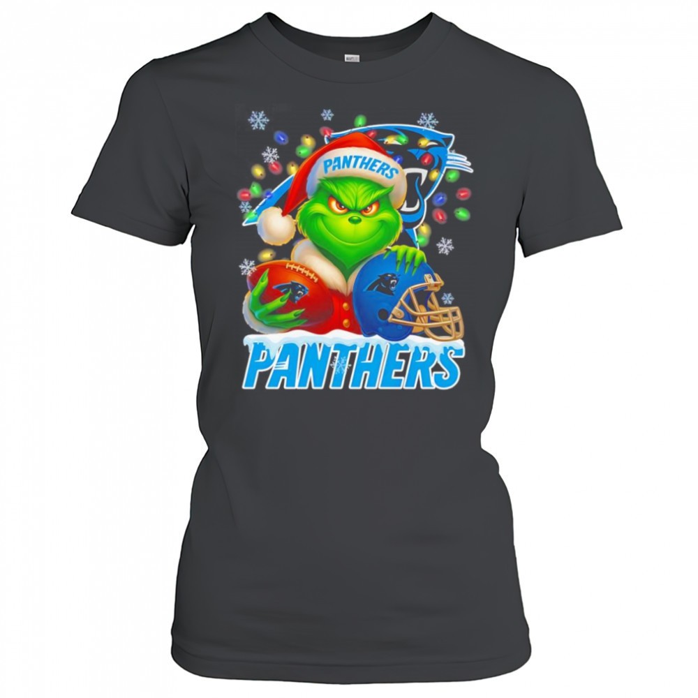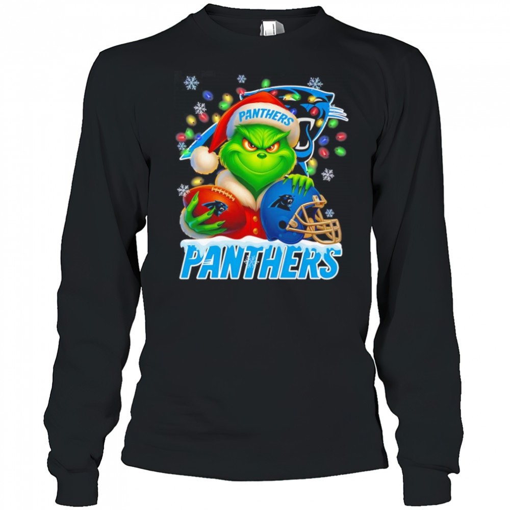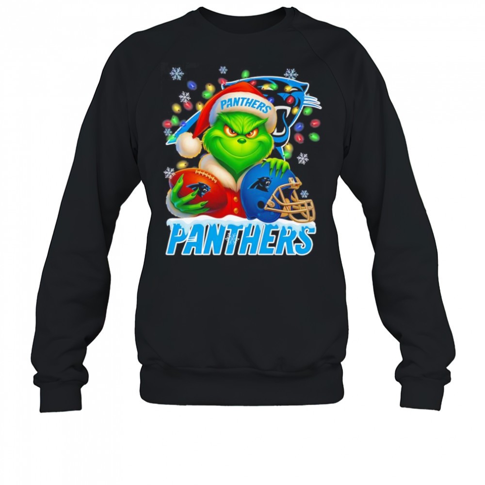 Santa Christmas Grinch Carolina Panthers holding helmet football shirt