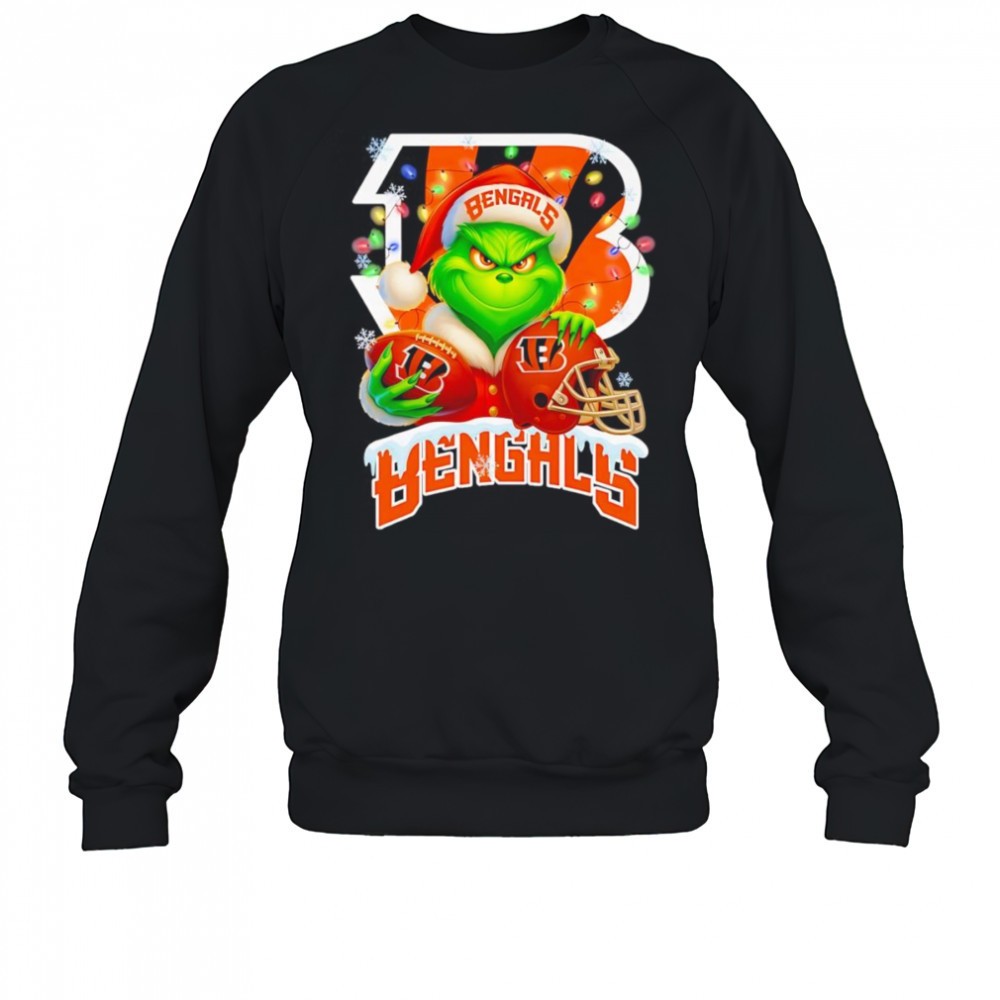 Santa Christmas Grinch Cincinnati Bengals holding helmet football shirt