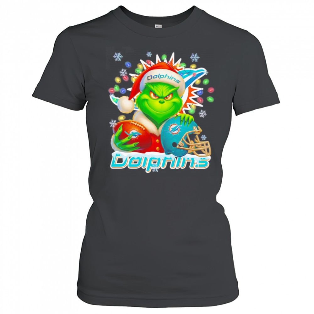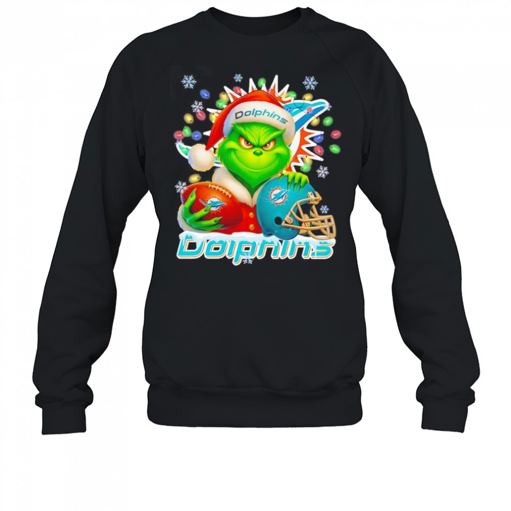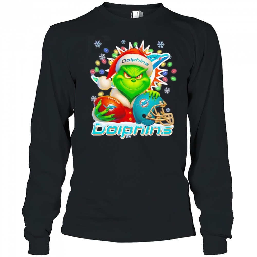 Santa Christmas Grinch Miami Dolphins holding helmet football shirt