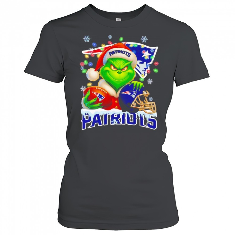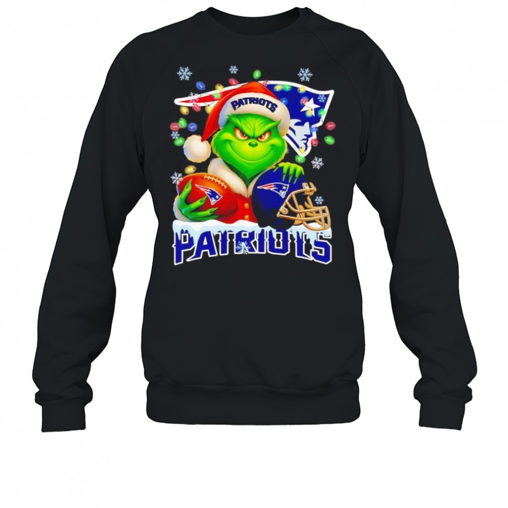 Santa Christmas Grinch New England Patriots holding helmet football shirt