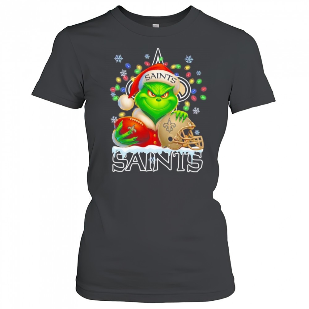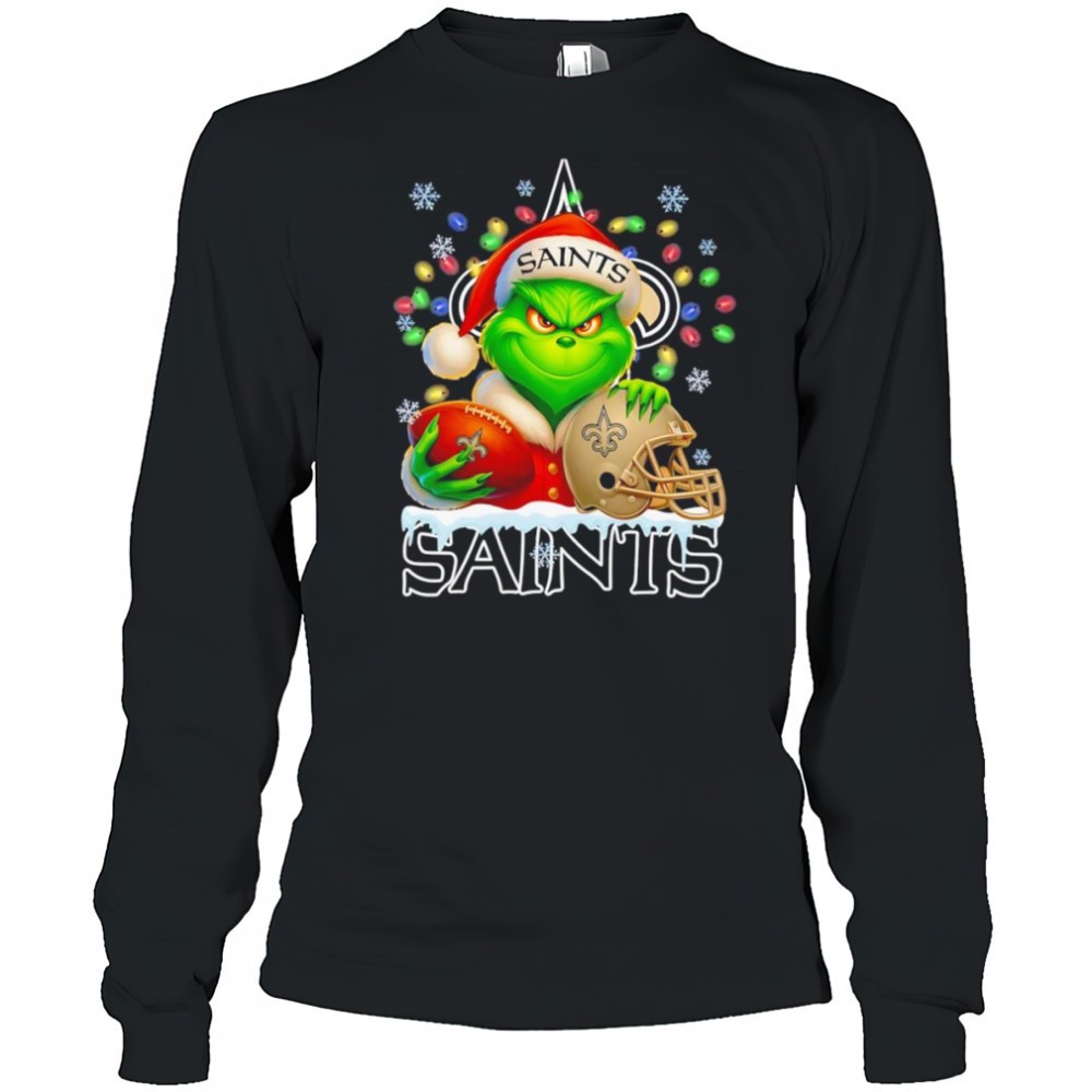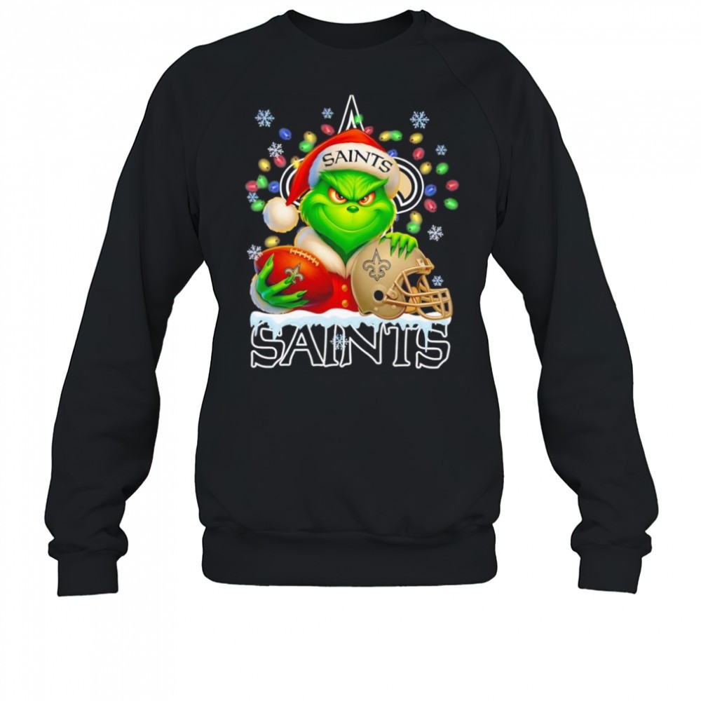 Santa Christmas Grinch New Orleans Saints holding helmet football shirt