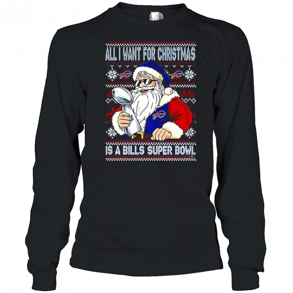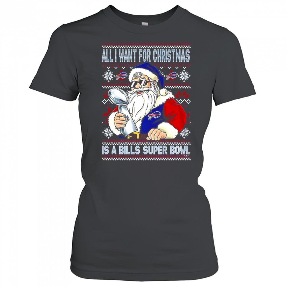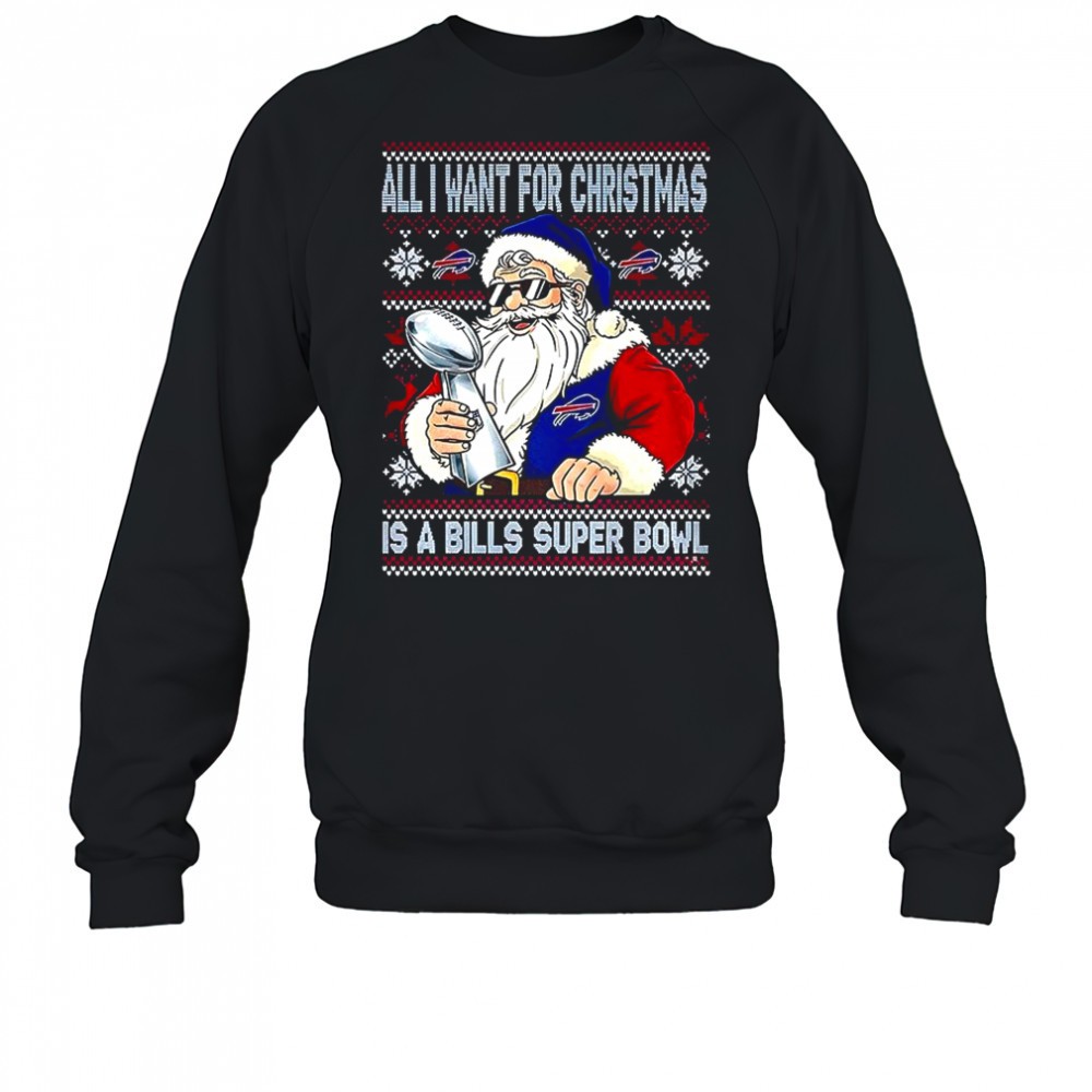 Santa Claus all I want for Christmas is Bills Super Bowl Champions trophy ugly Christmas shirt