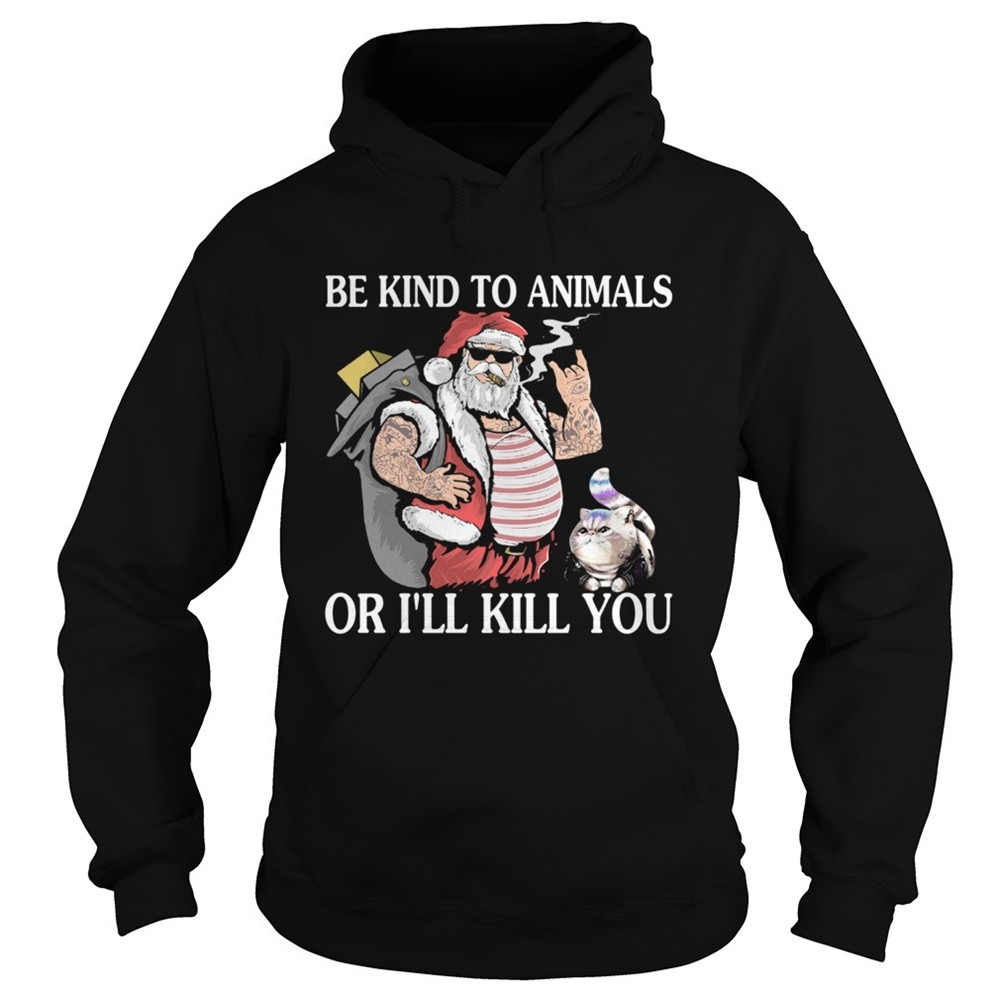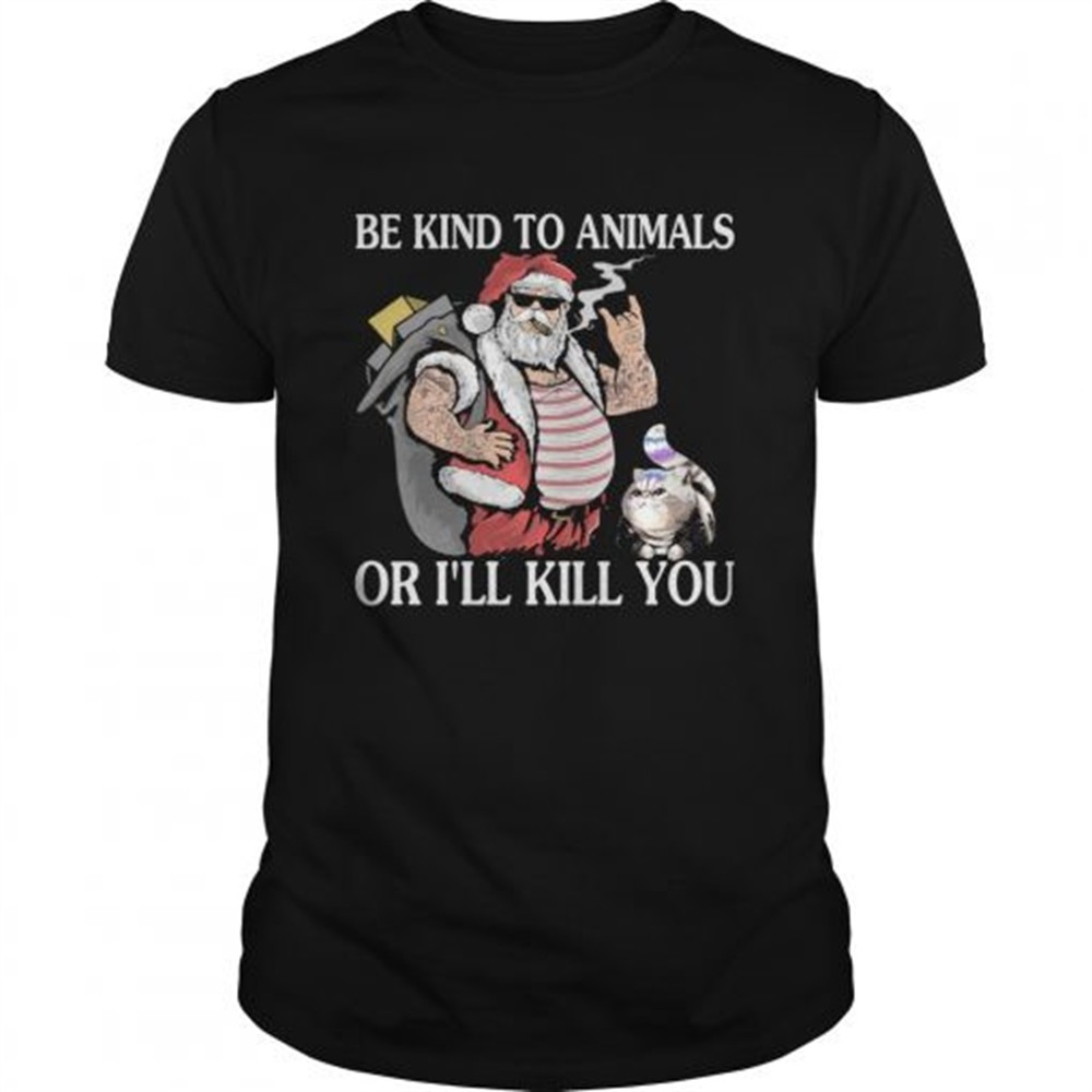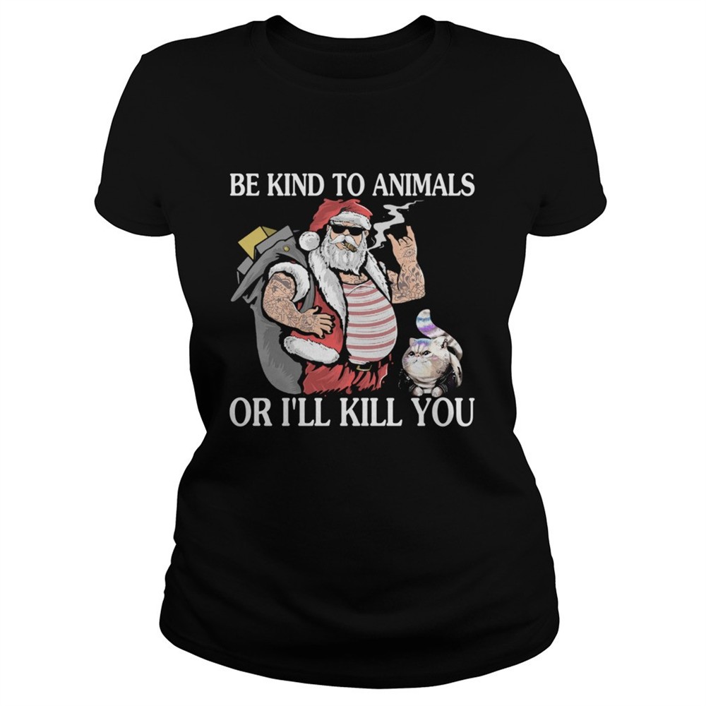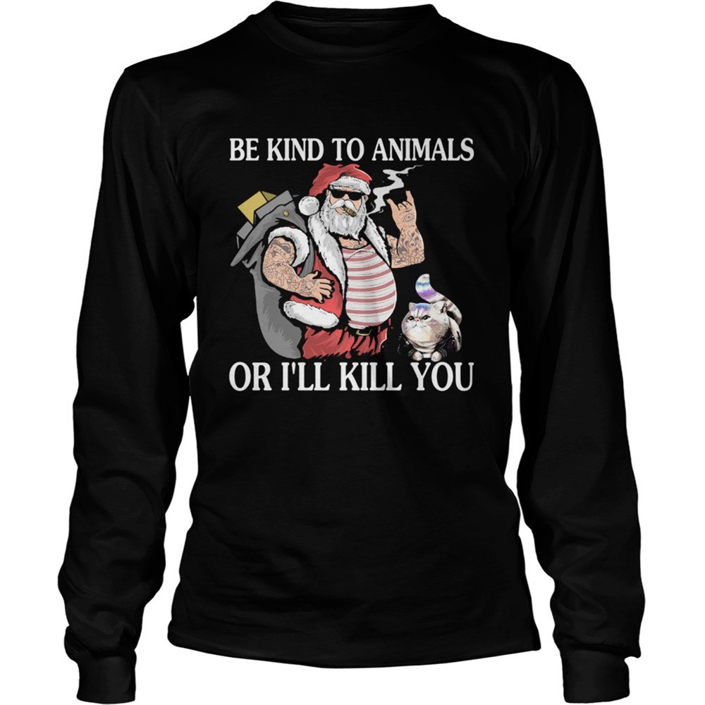Santa claus and Cat Be Kind to animals or Ill kill you christmas shirt