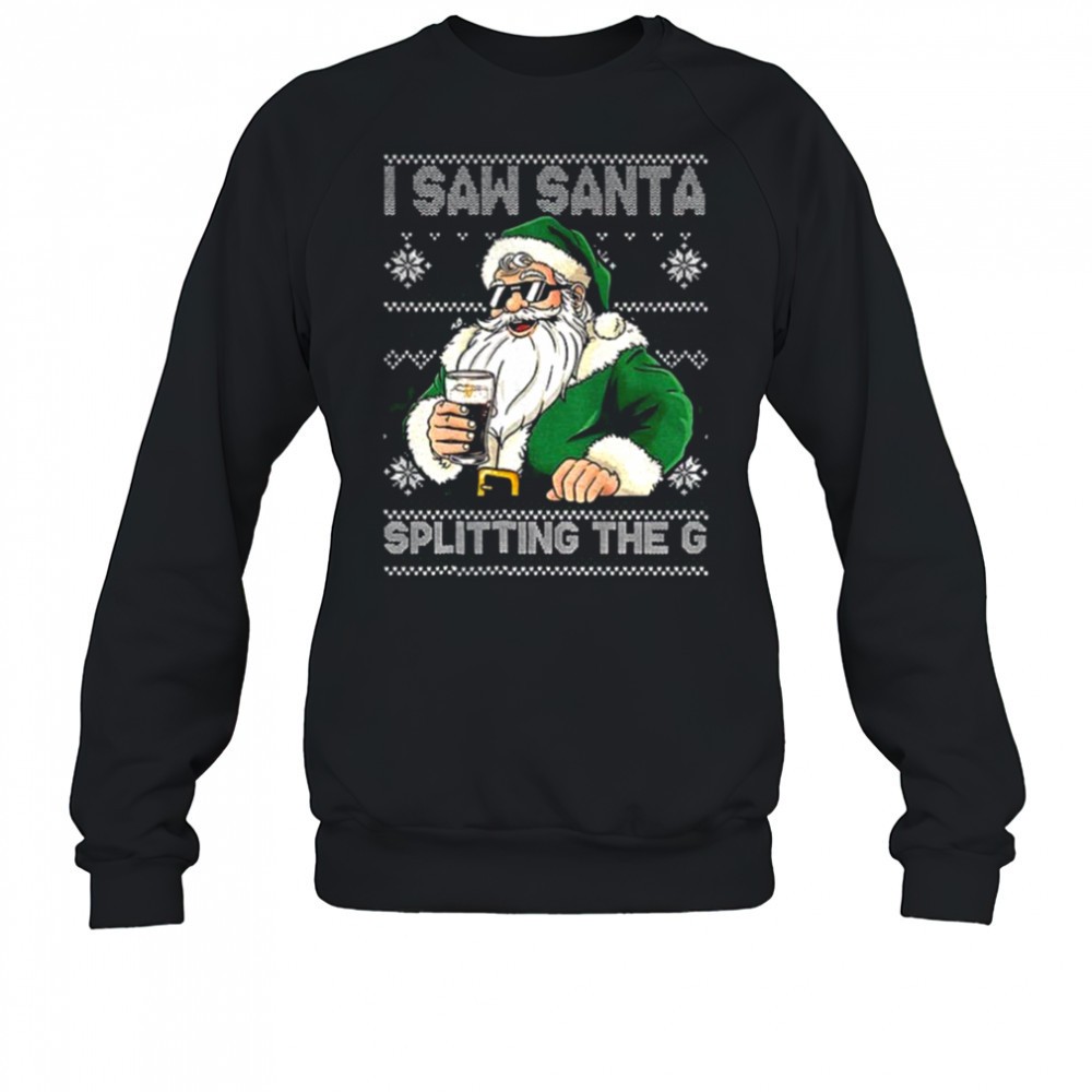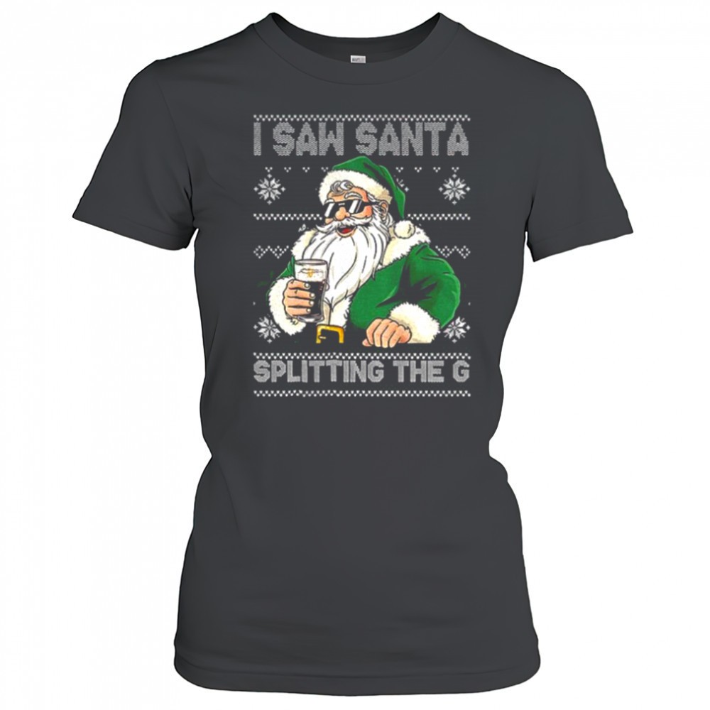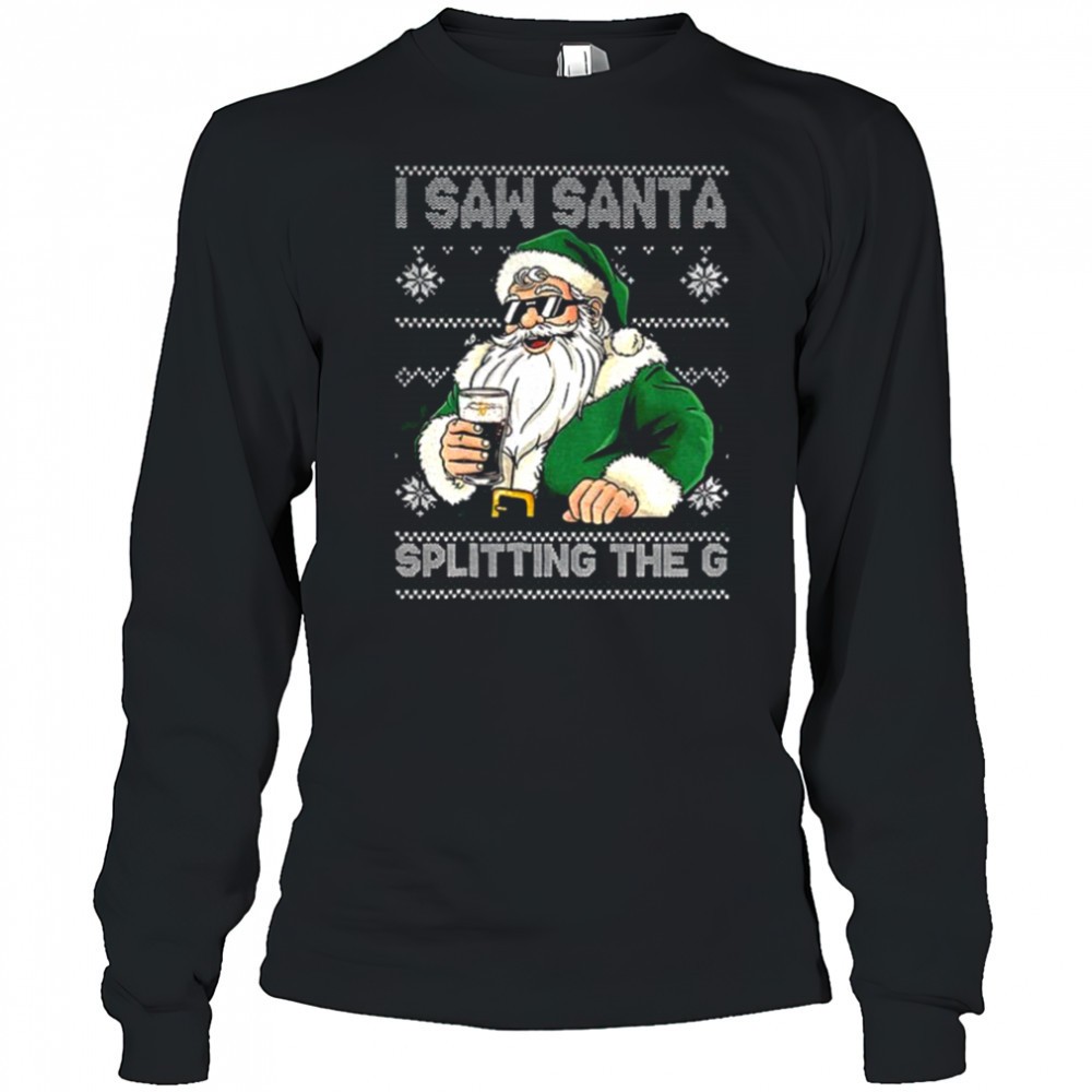 Santa Claus drinking beer Splitting G I saw Santa splitting the G Christmas shirt