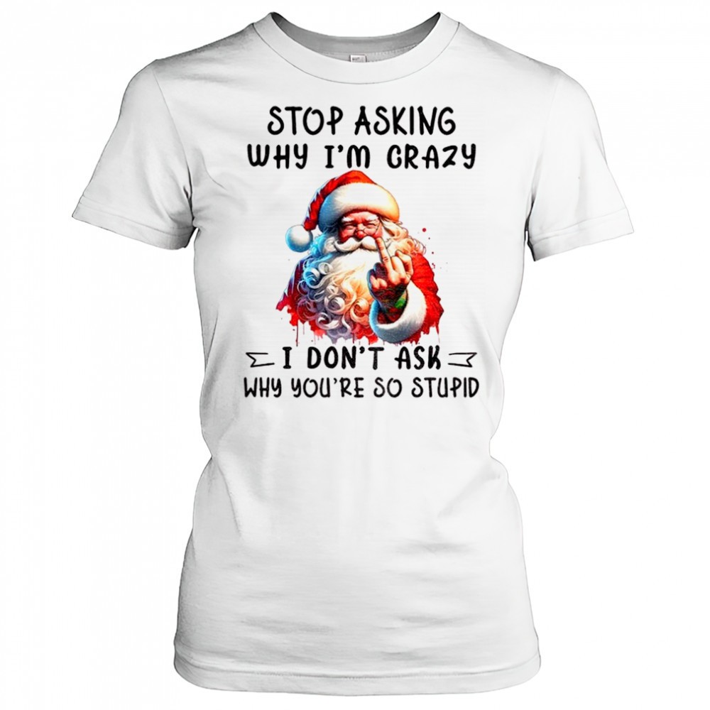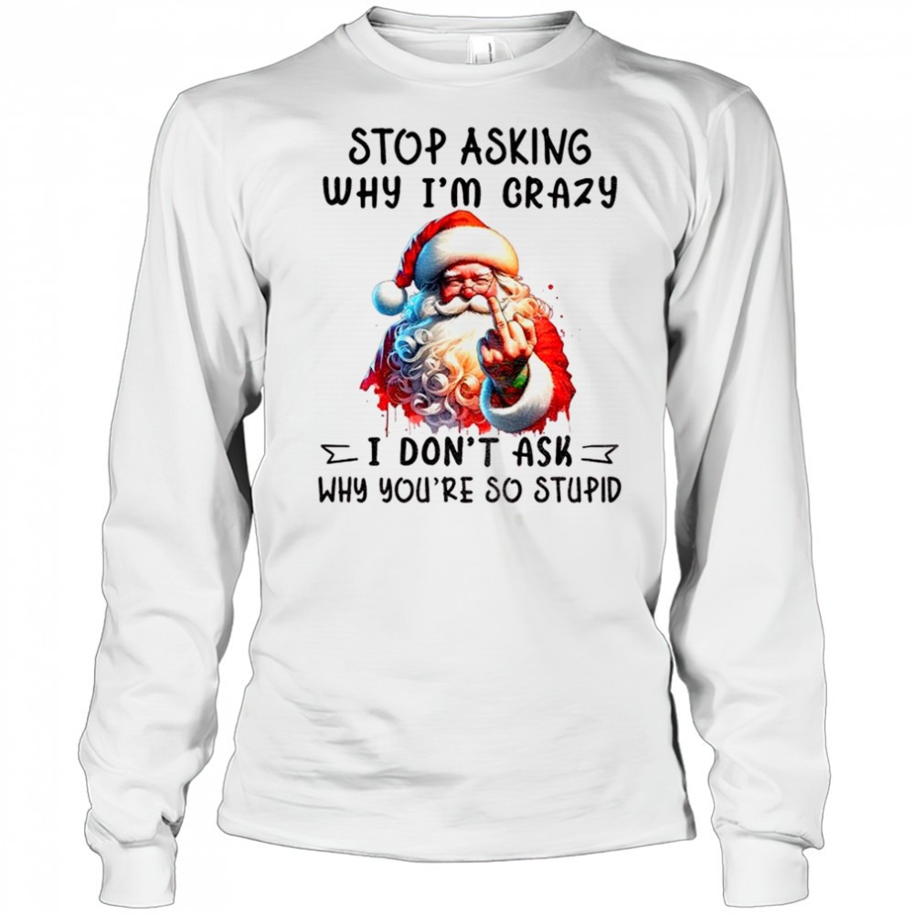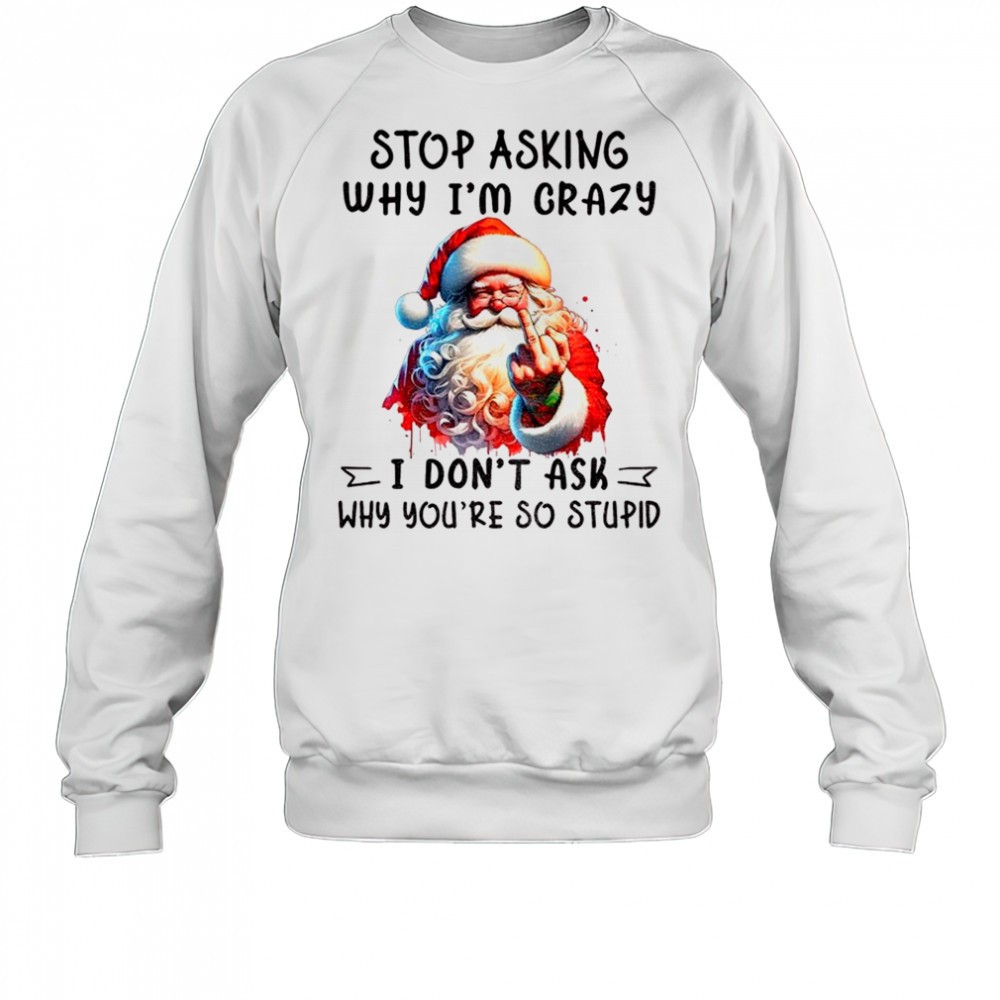 Santa Claus middle finger stop asking why Im crazy I dont ask why youre so stupid Christmas shirt