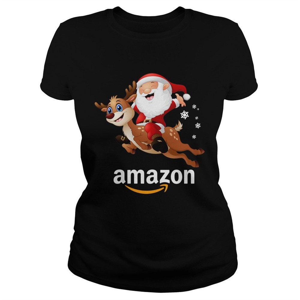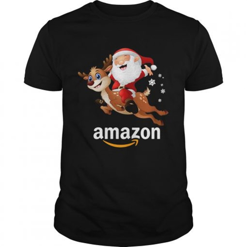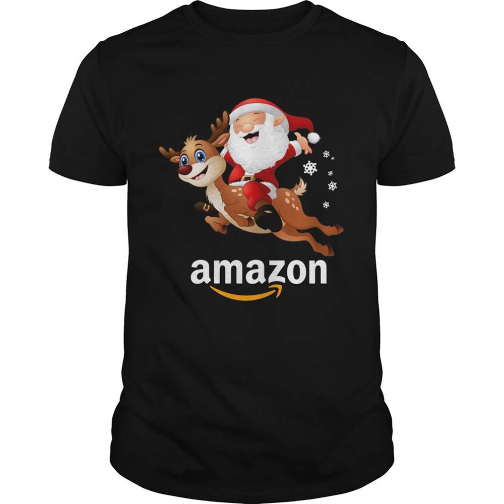 Santa Claus riding reindeer Amazon shirt
