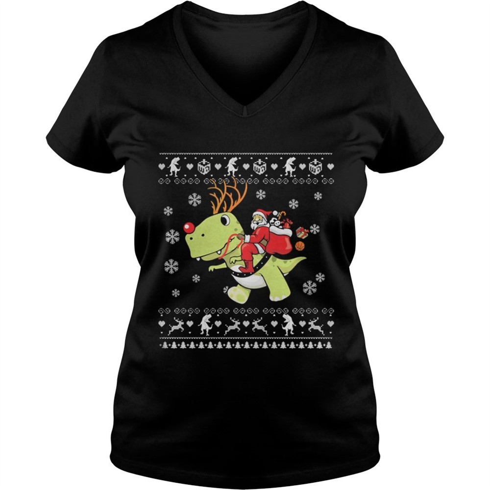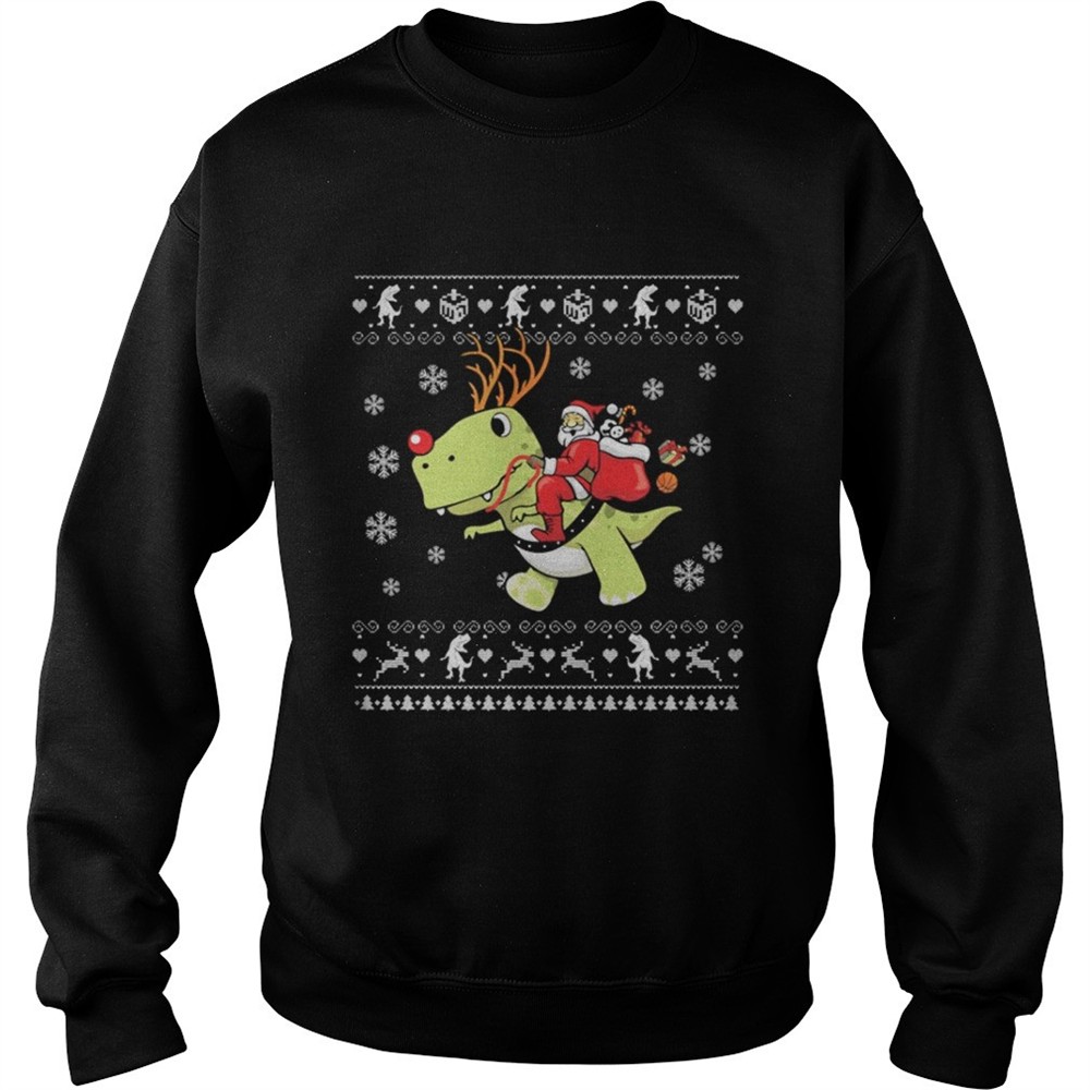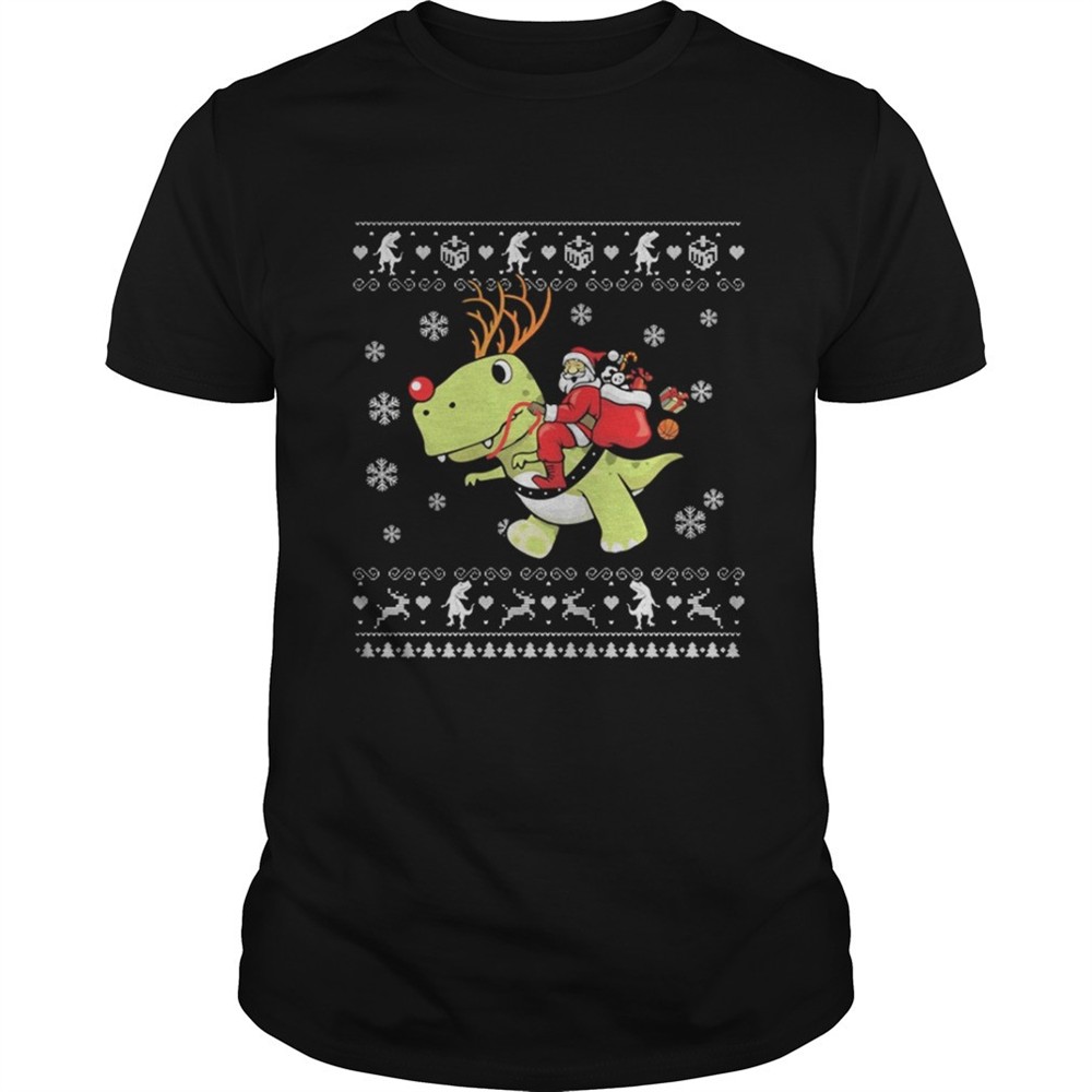 Santa Claus riding T-rex Dinosaur Christmas shirt