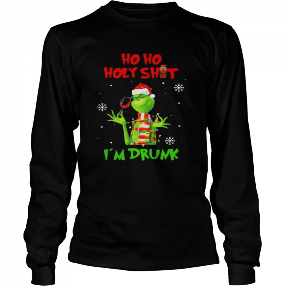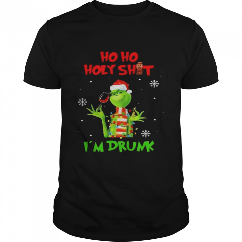Santa Grinch Ho ho holy sit Im drunk Merry Chritmas lights shirt