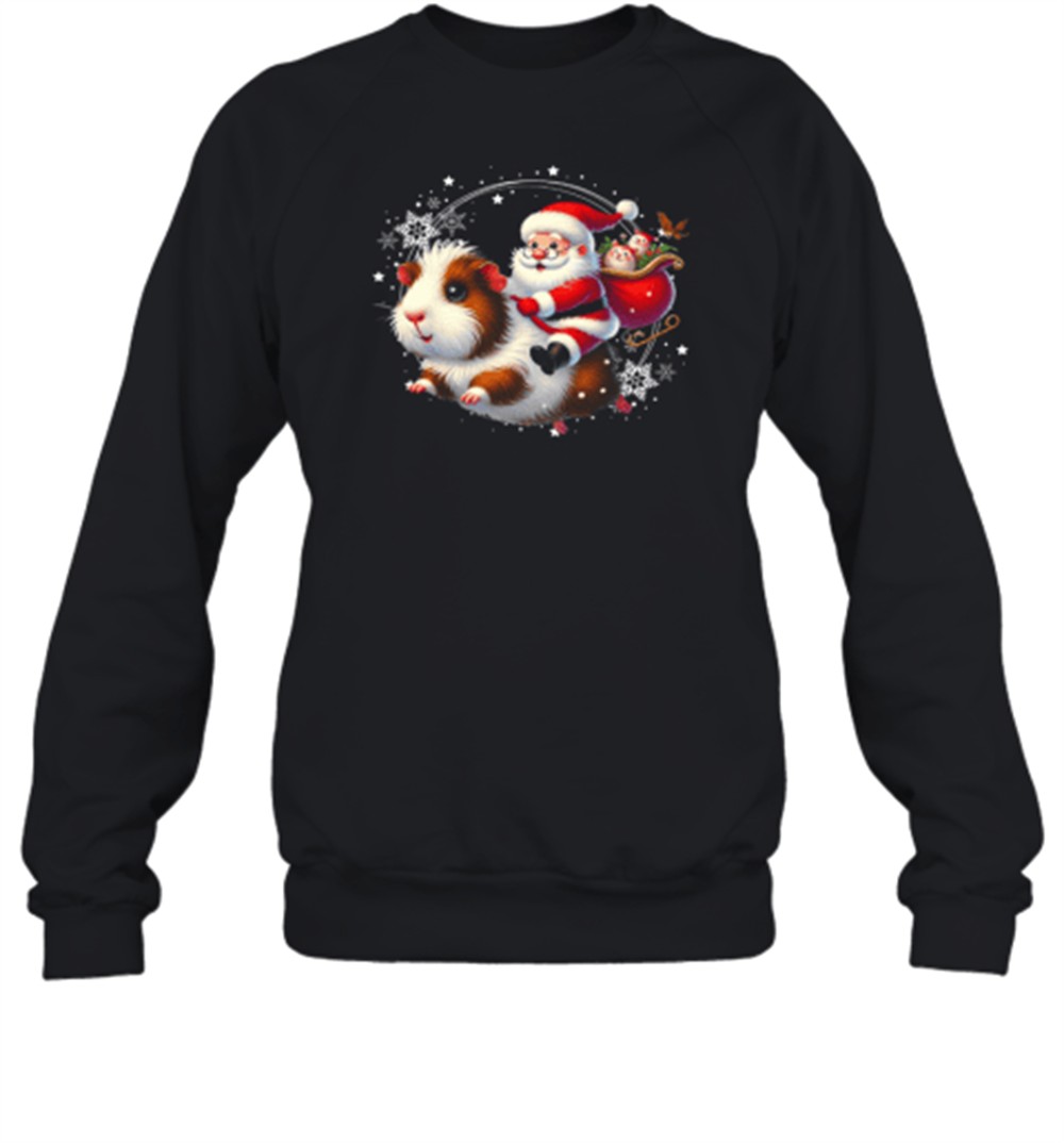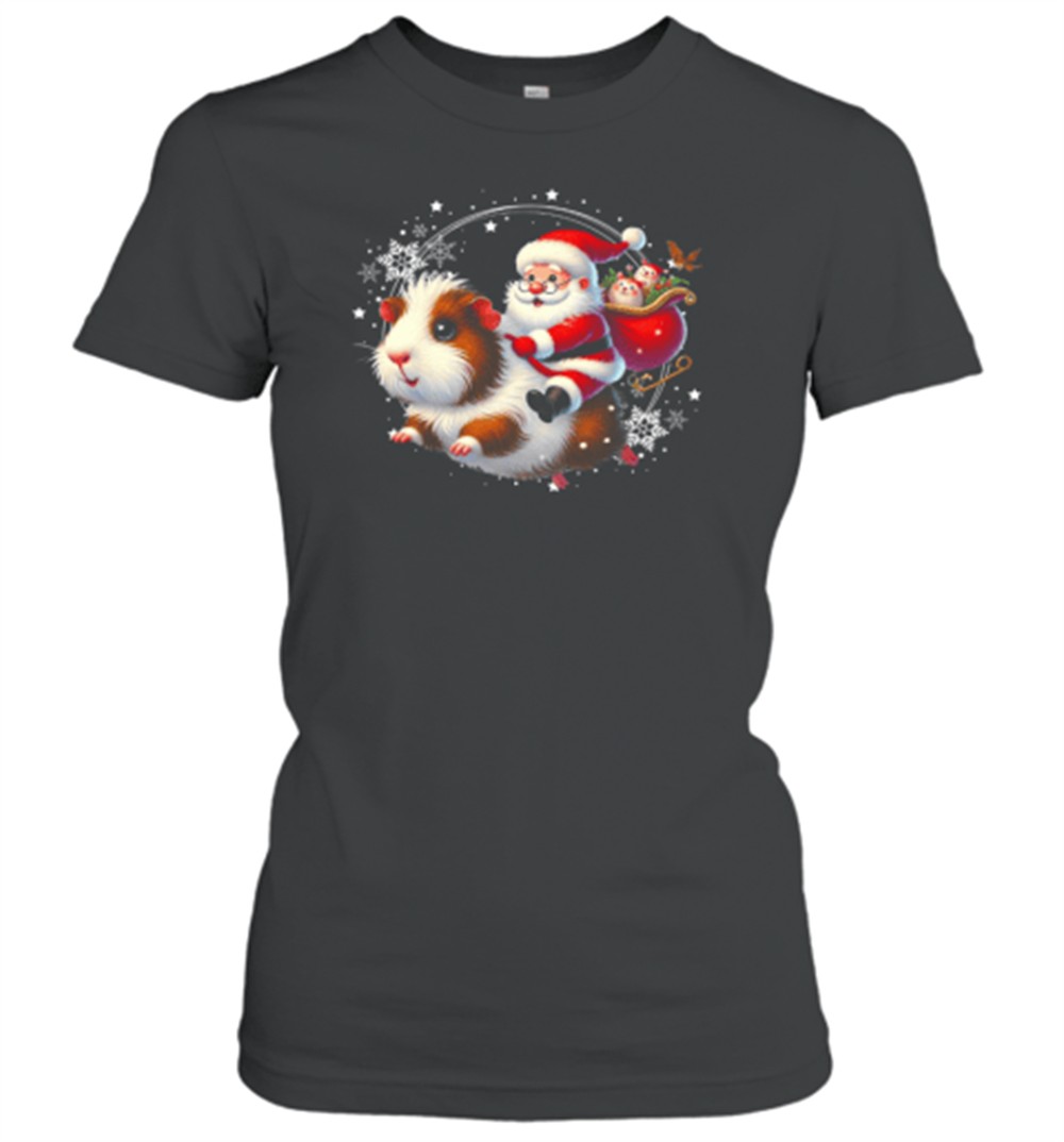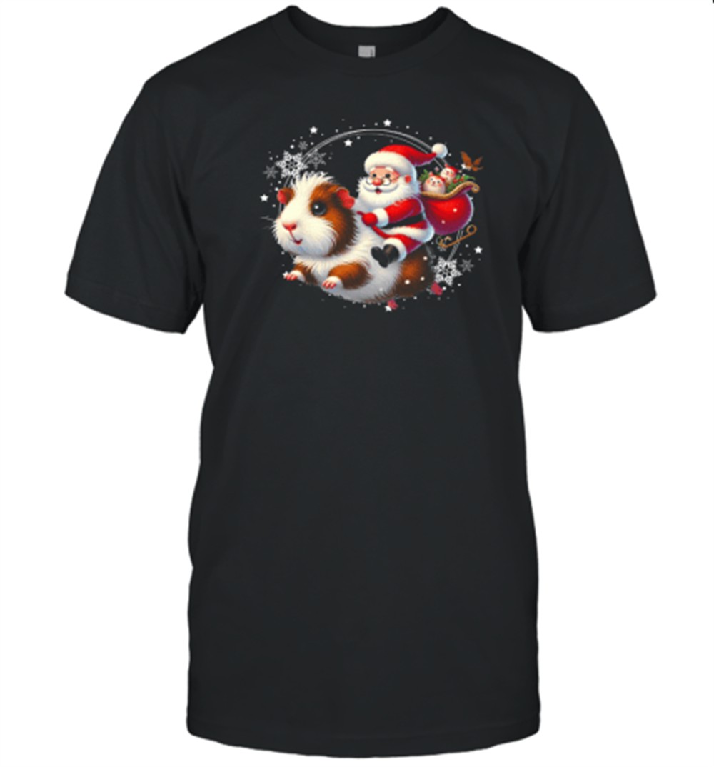 Santa On Guinea Pig Funny Christmas T-Shirt