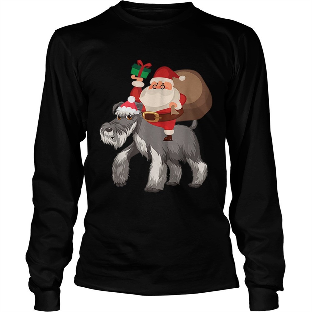 Santa Riding Miniature Schnauzer Christmas Pajama Gift shirt