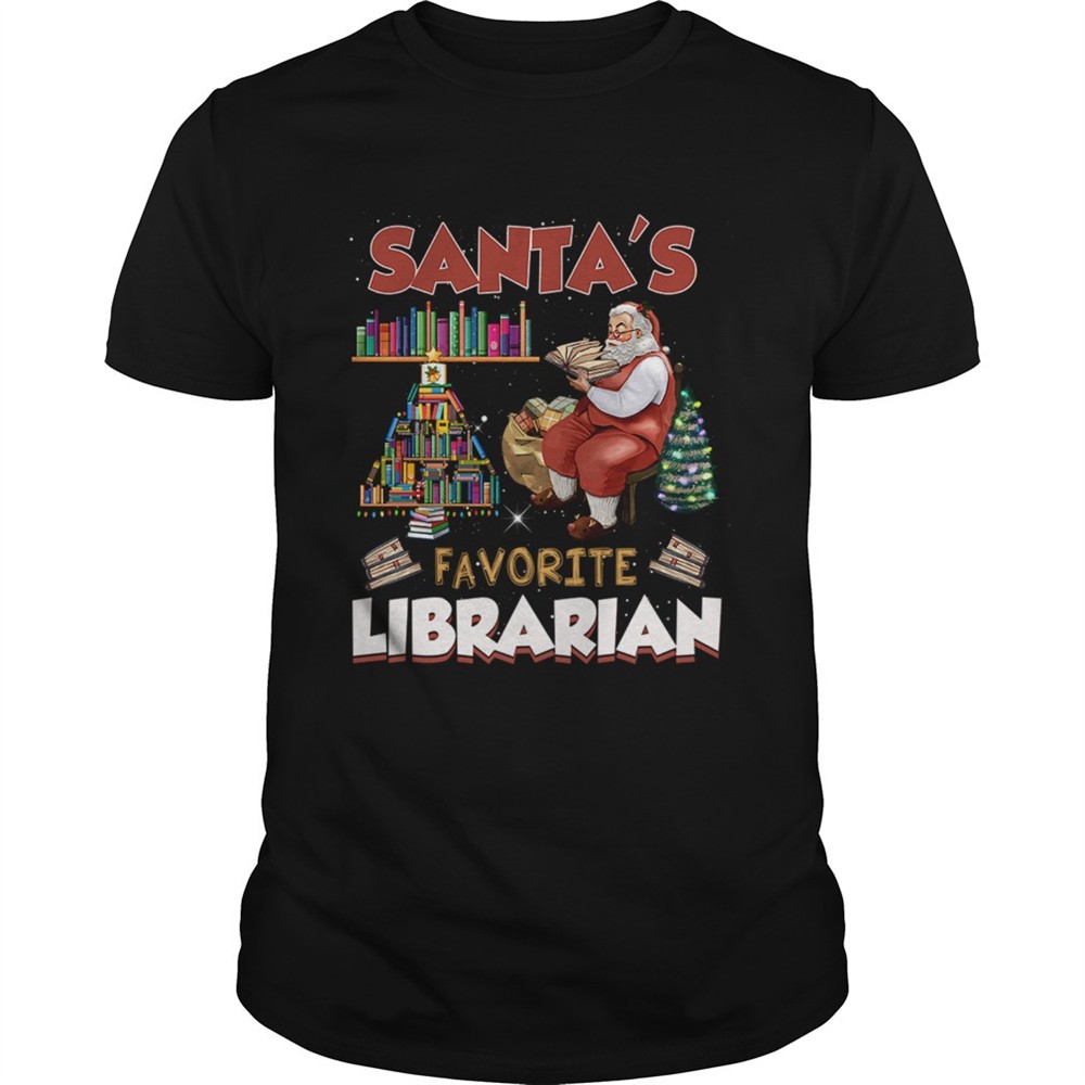 Santas Favorite Librarian Funny Christmas Ornaments shirt
