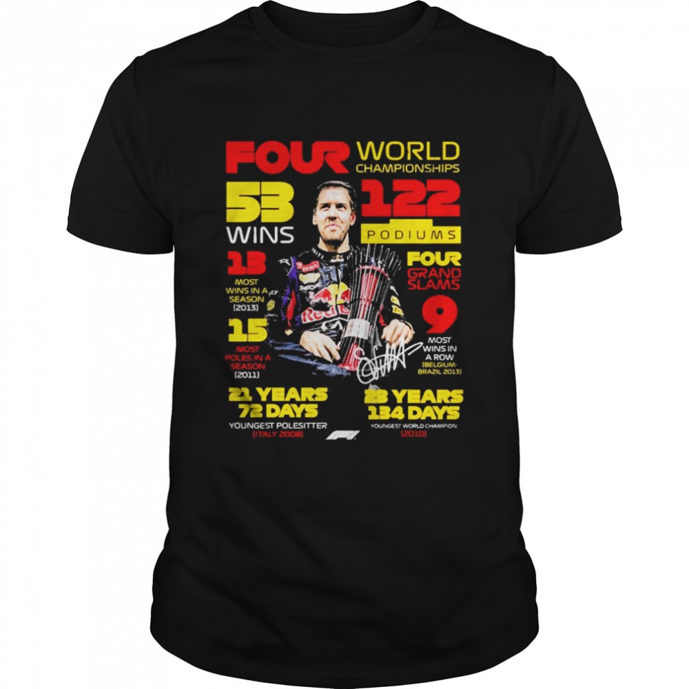 Sebastian Vettel Four world Championship Youngest Pole Sitter Youngest World Champions signature shirt