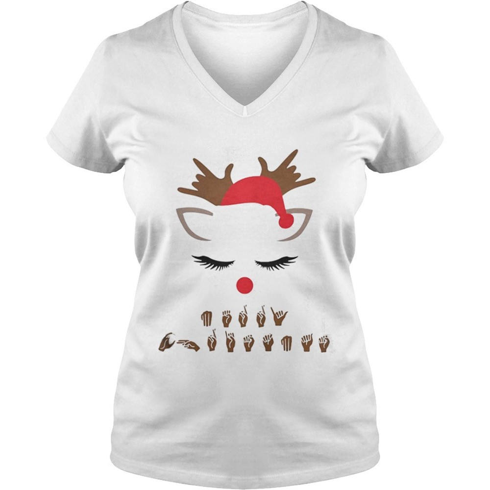 Sign language Deaf merry Christmas reindeer shirt
