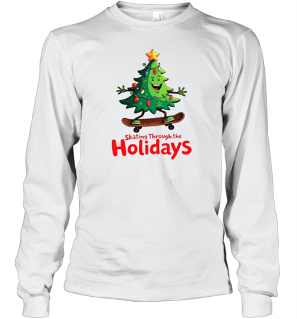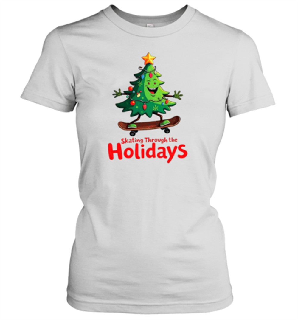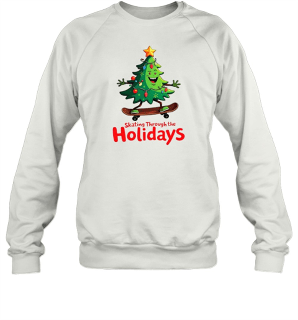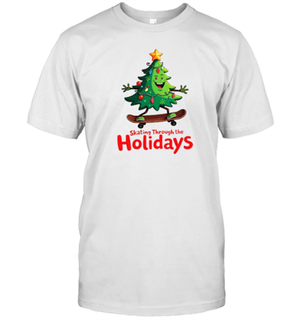 Skating Through The Holiday Christmas Tree Skateboard T-Shirt