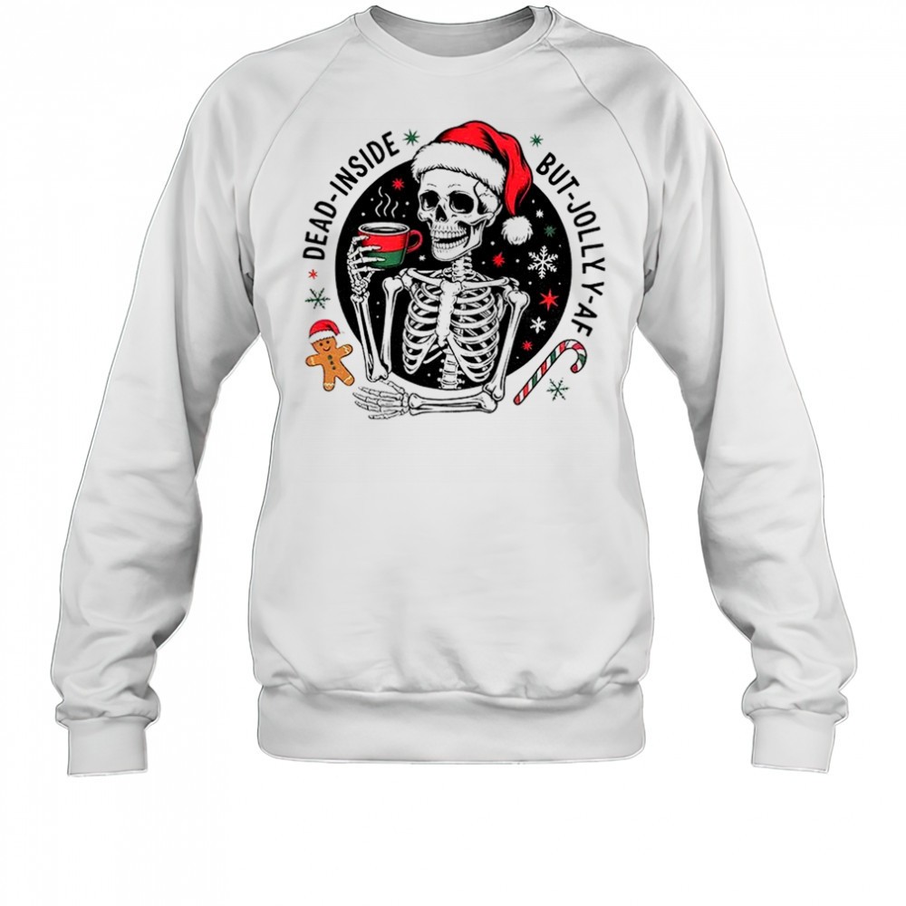 Skeleton Santa hat Dead Inside But Jolly AF Merry Christmas shirt