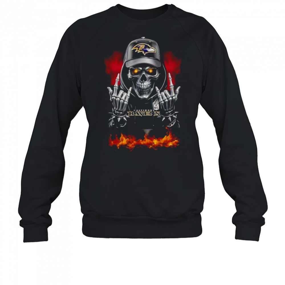 Skeleton with sign of the horns Baltimore Ravens shirt