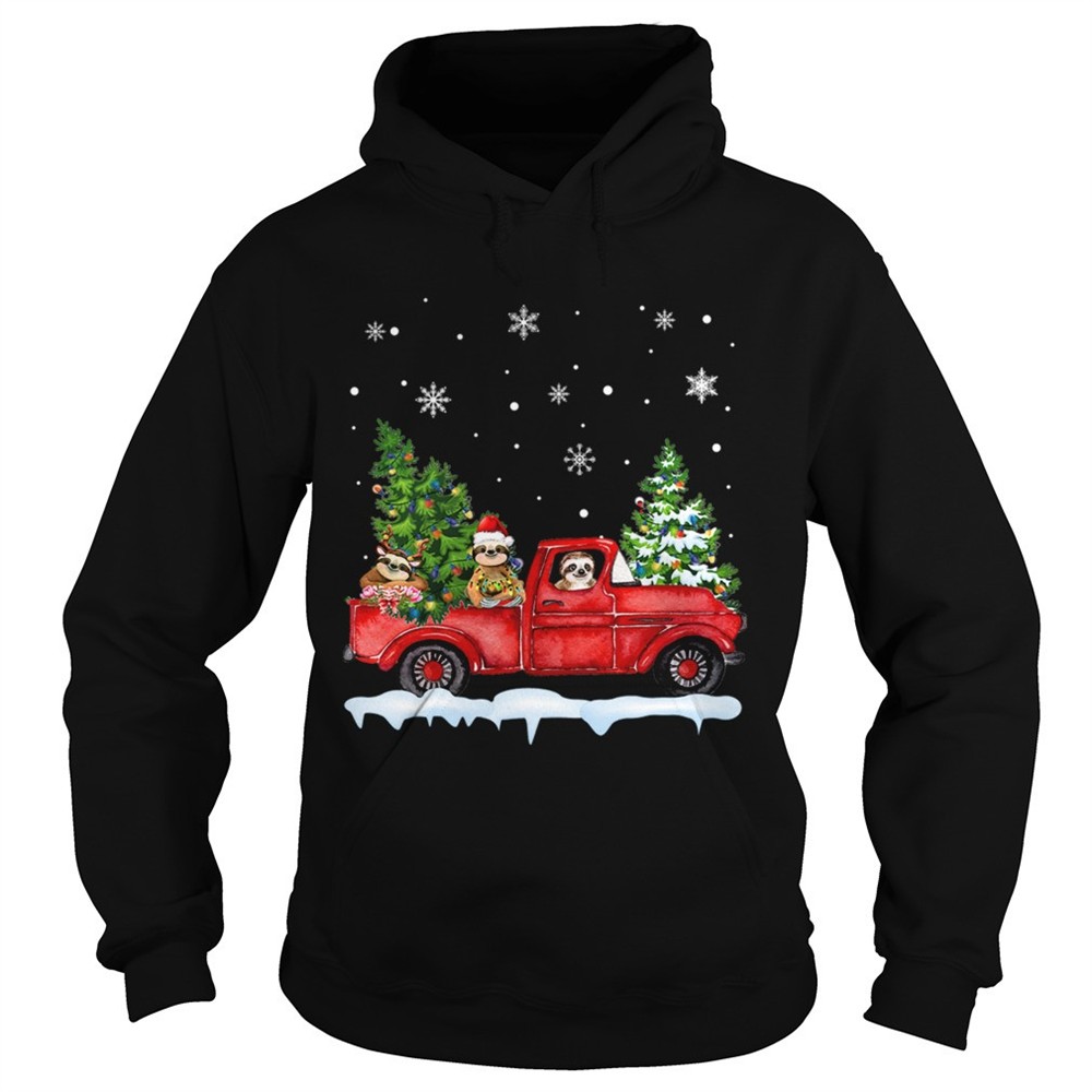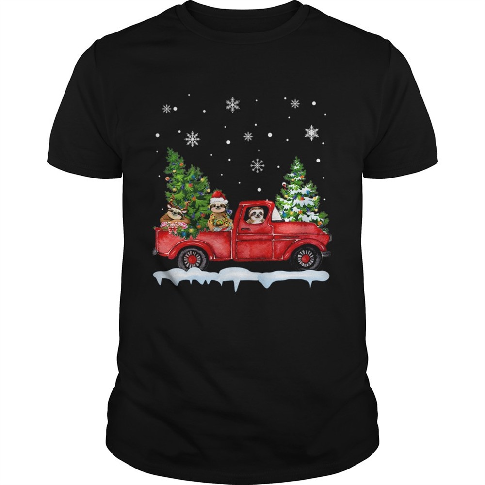 Sloth With Red Truck Christmas Holiday Gift TShirt