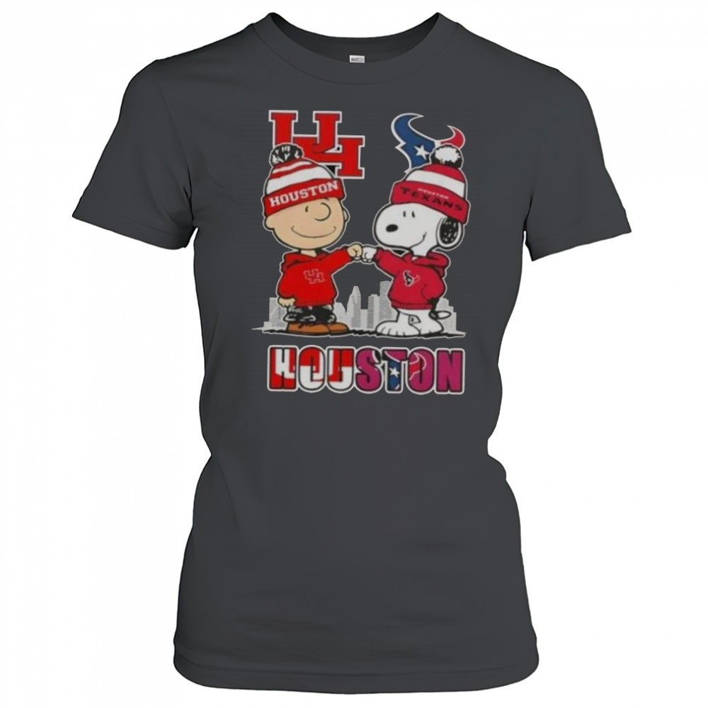 Snoopy And Charlie Brown Houston Sports Cougars X Texans Skyline T-Shirt